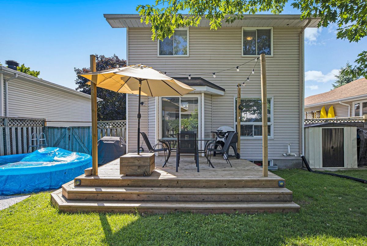 Your Home Wishes just may come true with this lovely 3 bed 1.5 bath home. Nestled in a mature family oriented neighbourhood this home offers a little something for everyone. Stepping onto an inviting front porch you are greeted by a spacious foyer with a convenient half bath just to the side. Foyer also offers inside entry from garage. Completing the main floor is a cozy living room with gas fireplace and a calming view to back yard. A spacious dining room area is just adjacent to the kitchen that offers a ton of natural light through over the sink window and large patio door that leads to a fully fenced back yard complete with updated deck, a mature canopy of trees and plenty of space to relax and entertain. Upstairs are 3 well appointed bedrooms with ample closet space, generous hall space, linen closet and a family bathroom. On the lower level there is a large family room complete with a bar, natural gas 'woodstove' and a bit of whimsy for the collector enthusiast to display their wares. A designated laundry room with a rough in and more storage. Storage is abundant in the lower level (under stairs, mechanical room and electrical room). Book your showing today and see if this just might be the home for you.