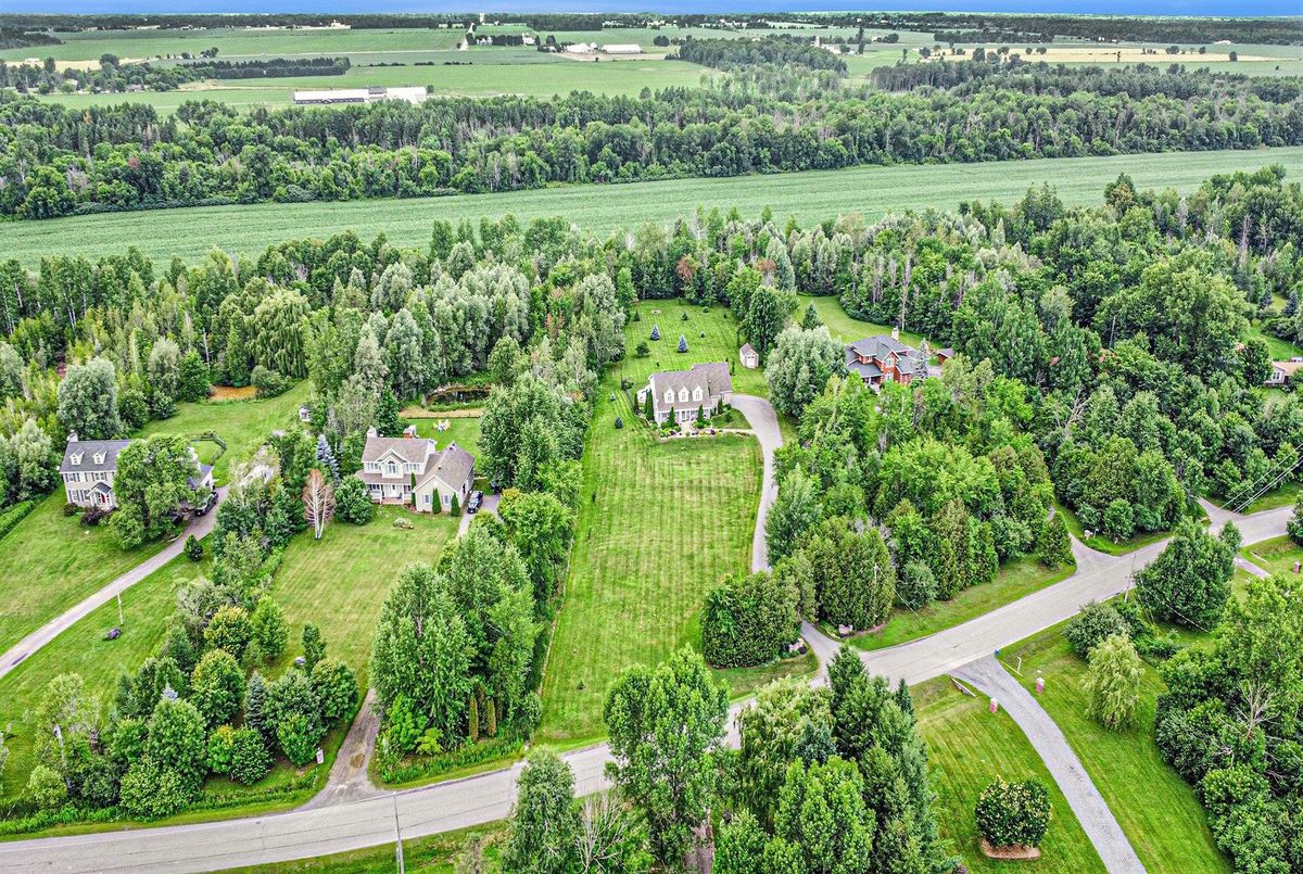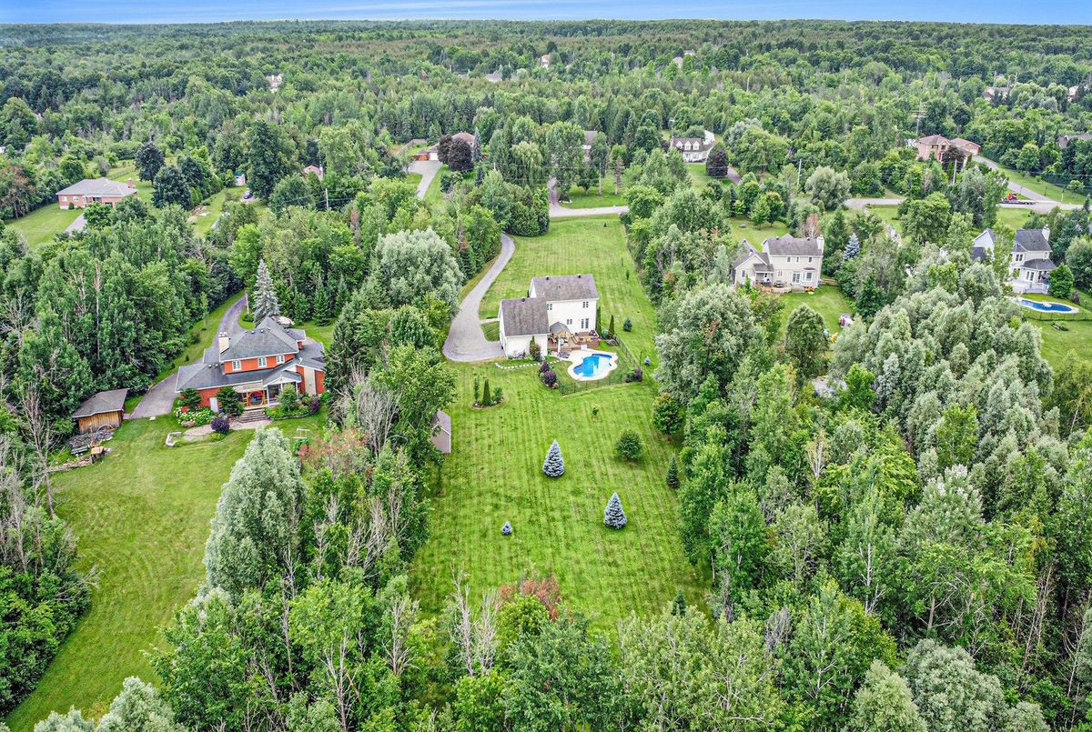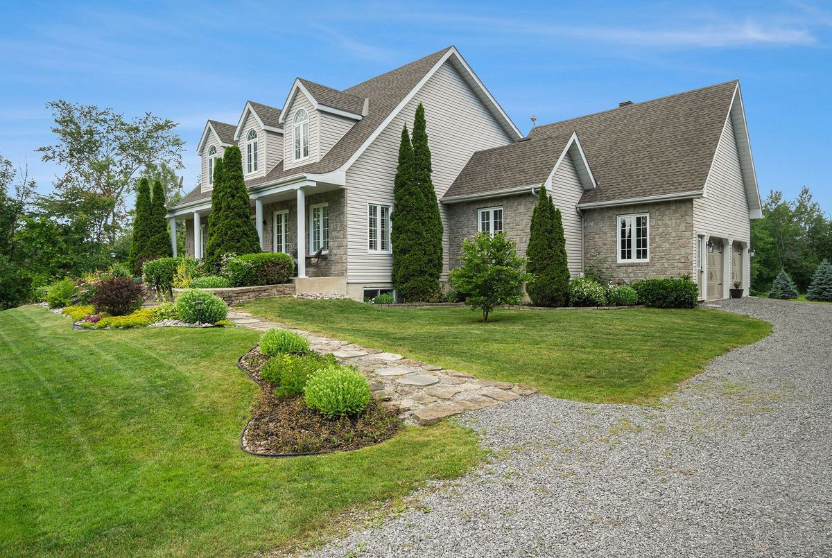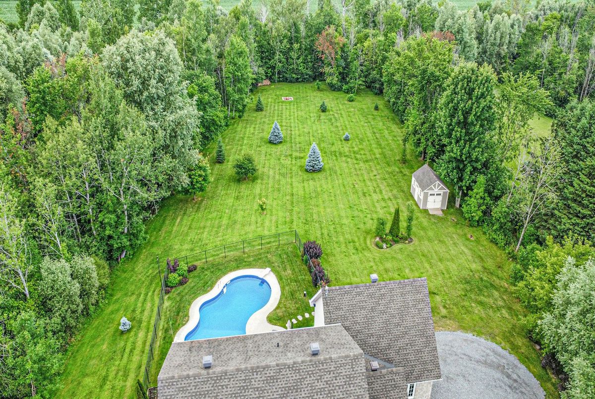 Welcome to the tranquil well established neighbourhood of Maple Ridge Estates in Metcalfe. This custom built 2,478 sqft (incl basement) two storey home is the perfect country escape from the bustling city and sits on 2.66 acres with no rear neighbours. Enter into a bright and welcoming open living space with 17ft cathedral ceilings and a stone floor to ceiling propane fireplace. The gourmet kitchen is a standout, boasting sleek quartz countertops, modern cabinetry, 8 ft island, SS, appliances, and stylish backsplash, all bathed in natural light. Adjacent to the kitchen, elegant dining space perfect for family meals and overlooking the sprawling backyard oasis. Not to mention the spacious main level master bedroom with a large walk-in closet and a luxurious full ensuite. The mudroom completes the main floor with plenty of storage and access to the 2 car attached garage and fenced pool area. Overlooking the main level, the upstairs offers a secondary primary bedroom and two well-sized bedrooms, each with abundant closet space and a shared 4pc bathroom. The basement features a wide rec/family area, another bedroom, 3pc bathroom and an ample utility room for storage, mechanical, and laundry. Outside, the backyard features lush gardens, a refreshing 18x36 ft saltwater inground pool, and a generous wood deck with a covered cedar gazebo, ideal for summer leisure and outdoor entertaining. Updates include: Furnace, Hot Water Tank, Well Pressure Tank, Pool Upgrades, Kitchen, and more. Inclusions: Covered Gazebo, 12x16 Shed, Lawn Tractor, TV and wall mount in living room, Pool equipment, Furnace, Fridge, Stove, Washer, Dryer, Oven, Dishwasher, & Microwave. Don't miss this opportunity, reach out and book today!