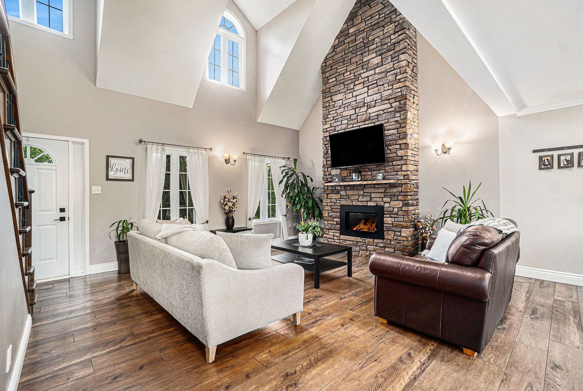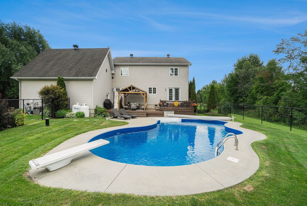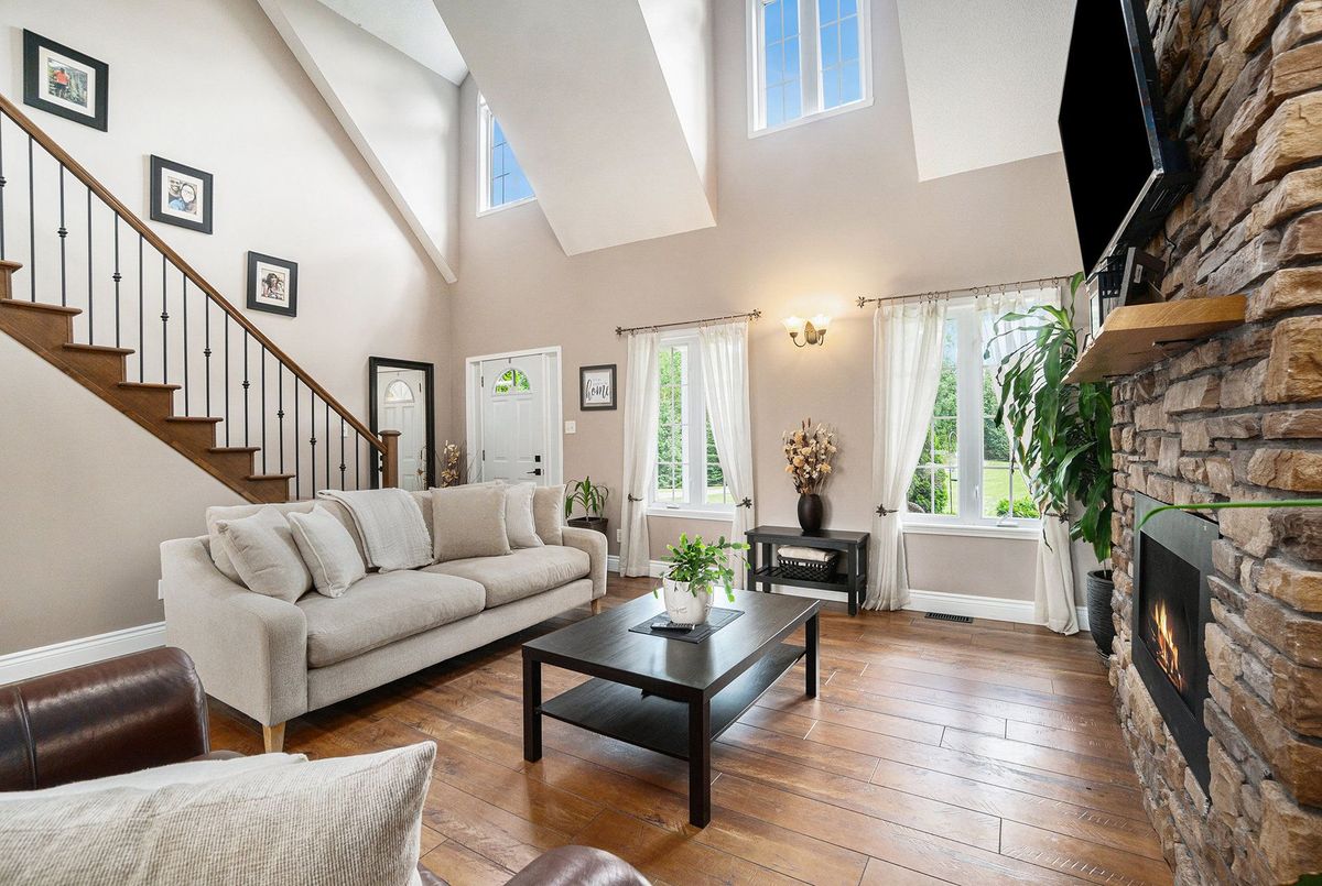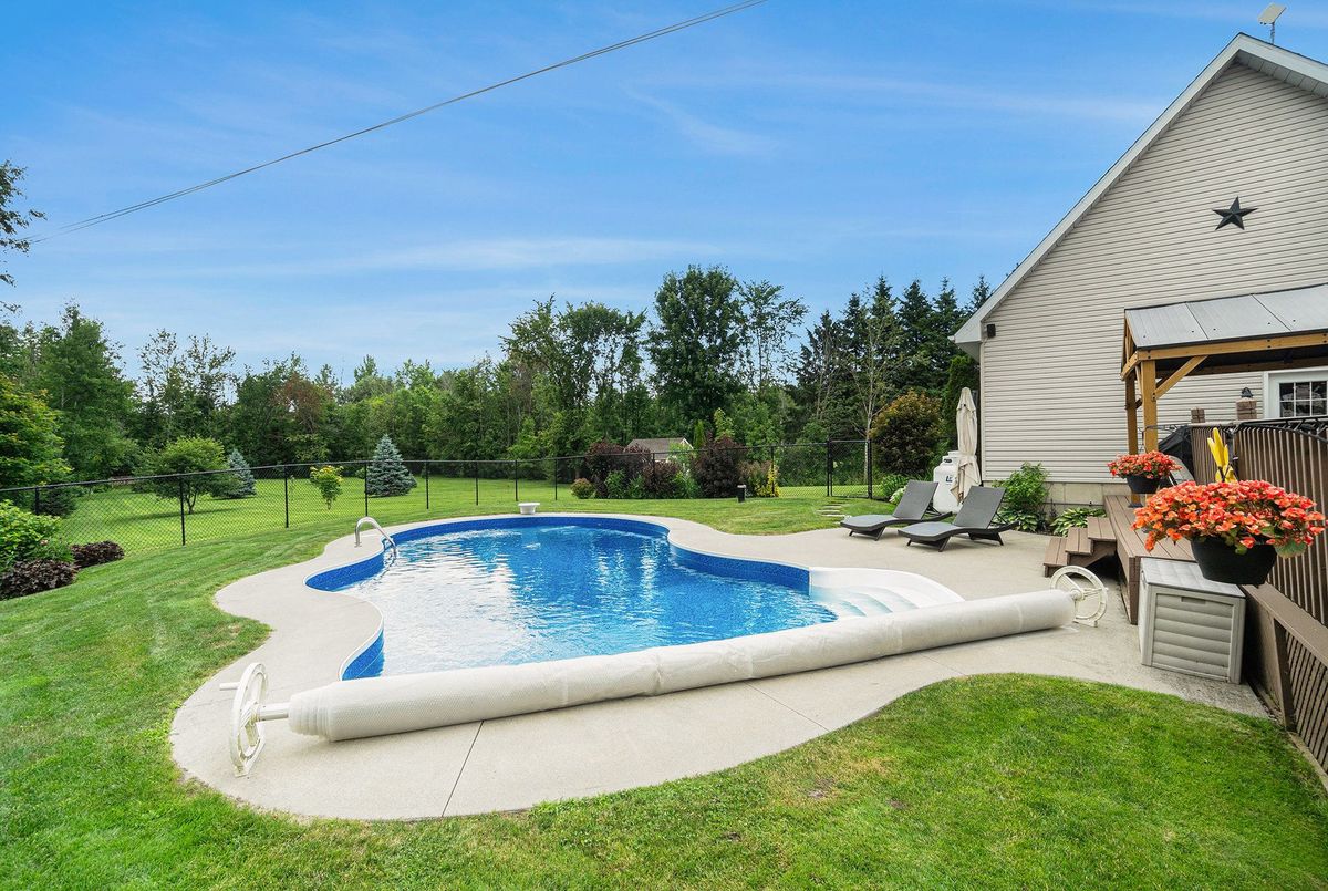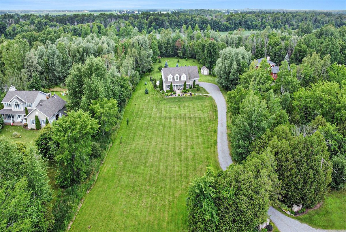 Welcome to the tranquil well established neighbourhood of Maple Ridge Estates in Metcalfe. This custom built 2,478 sqft (incl basement) two storey home is the perfect country escape from the bustling city and sits on 2.66 acres with no rear neighbours. Enter into a bright and welcoming open living space with 17ft cathedral ceilings and a stone floor to ceiling propane fireplace. The gourmet kitchen is a standout, boasting sleek quartz countertops, modern cabinetry, 8 ft island, SS, appliances, and stylish backsplash, all bathed in natural light. Adjacent to the kitchen, elegant dining space perfect for family meals and overlooking the sprawling backyard oasis. Not to mention the spacious main level master bedroom with a large walk-in closet and a luxurious full ensuite. The mudroom completes the main floor with plenty of storage and access to the 2 car attached garage and fenced pool area. Overlooking the main level, the upstairs offers a secondary primary bedroom and two well-sized bedrooms, each with abundant closet space and a shared 4pc bathroom. The basement features a wide rec/family area, another bedroom, 3pc bathroom and an ample utility room for storage, mechanical, and laundry. Outside, the backyard features lush gardens, a refreshing 18x36 ft saltwater inground pool, and a generous wood deck with a covered cedar gazebo, ideal for summer leisure and outdoor entertaining. Updates include: Furnace, Hot Water Tank, Well Pressure Tank, Pool Upgrades, Kitchen, and more. Inclusions: Covered Gazebo, 12x16 Shed, Lawn Tractor, TV and wall mount in living room, Pool equipment, Furnace, Fridge, Stove, Washer, Dryer, Oven, Dishwasher, & Microwave. Don't miss this opportunity, reach out and book today!