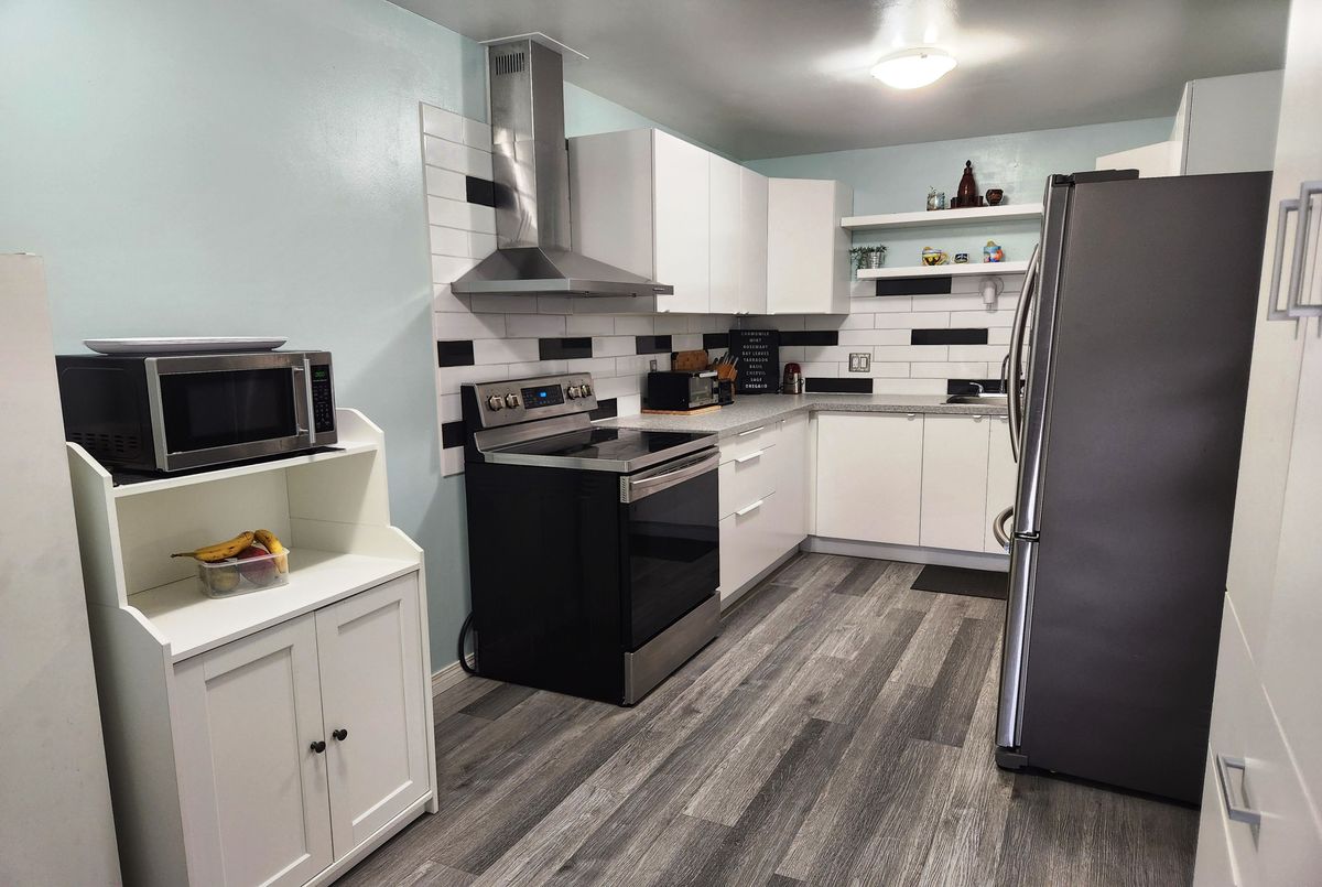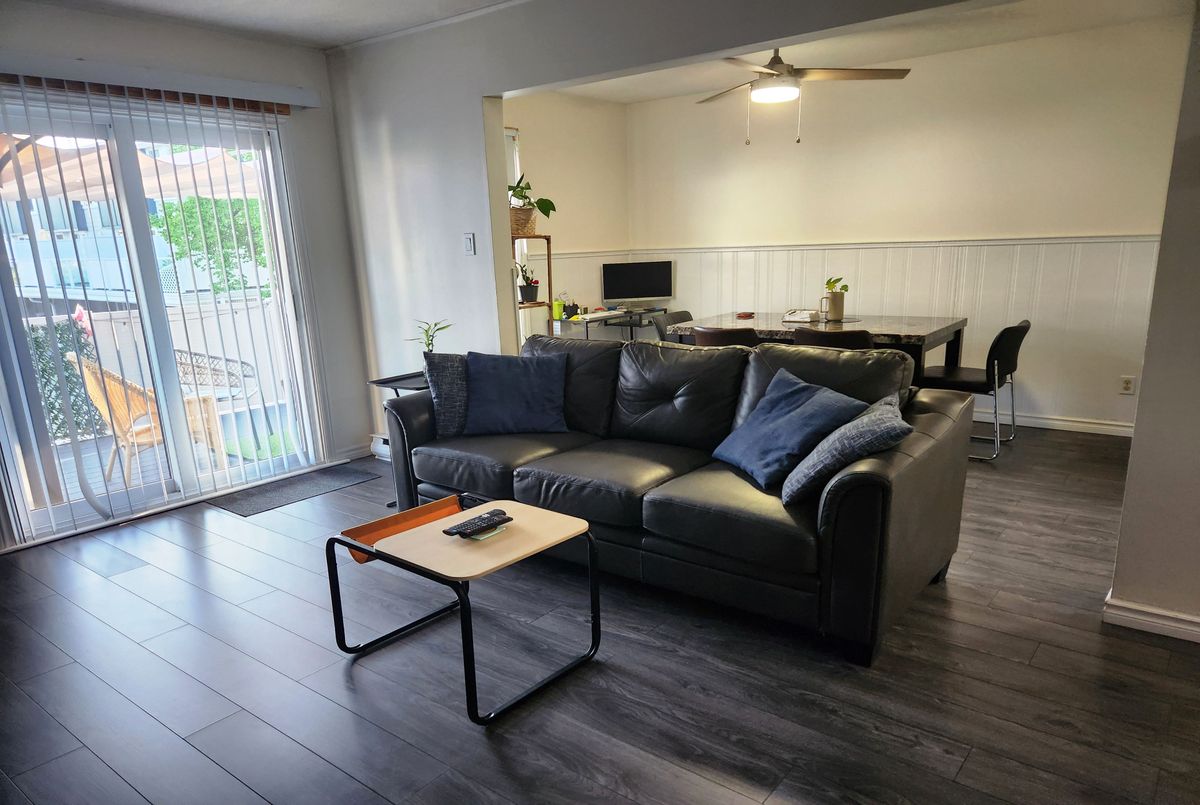 Why rent when you can own? Don't miss this lovely, updated 3 beds, 2 baths townhome. This bright unit features an inviting foyer on the main level. The second level offers a spacious kitchen with an eat-in area, big dining room and living room with a wood fireplace. On this level you will also find a powder room with the washer/dryer area. The house is filled with a lot of natural light coming through the living room patio doors that connect the indoors with a private outdoor balcony. The third level features three spacious bedrooms and a 5pc bath with new sinks. The newer flooring is a combination of carpet (bedrooms) and engineering hardwood floor. Enjoy the convenience of two heating/cooling Heat Pump units (with a wood fireplace make your electricity bills lower). A covered carport parking keeps your vehicle protected year-round. Great location! Close to the airport, grocery store, shoppings, schools, parks, transit, rec center, & many other amenities.
