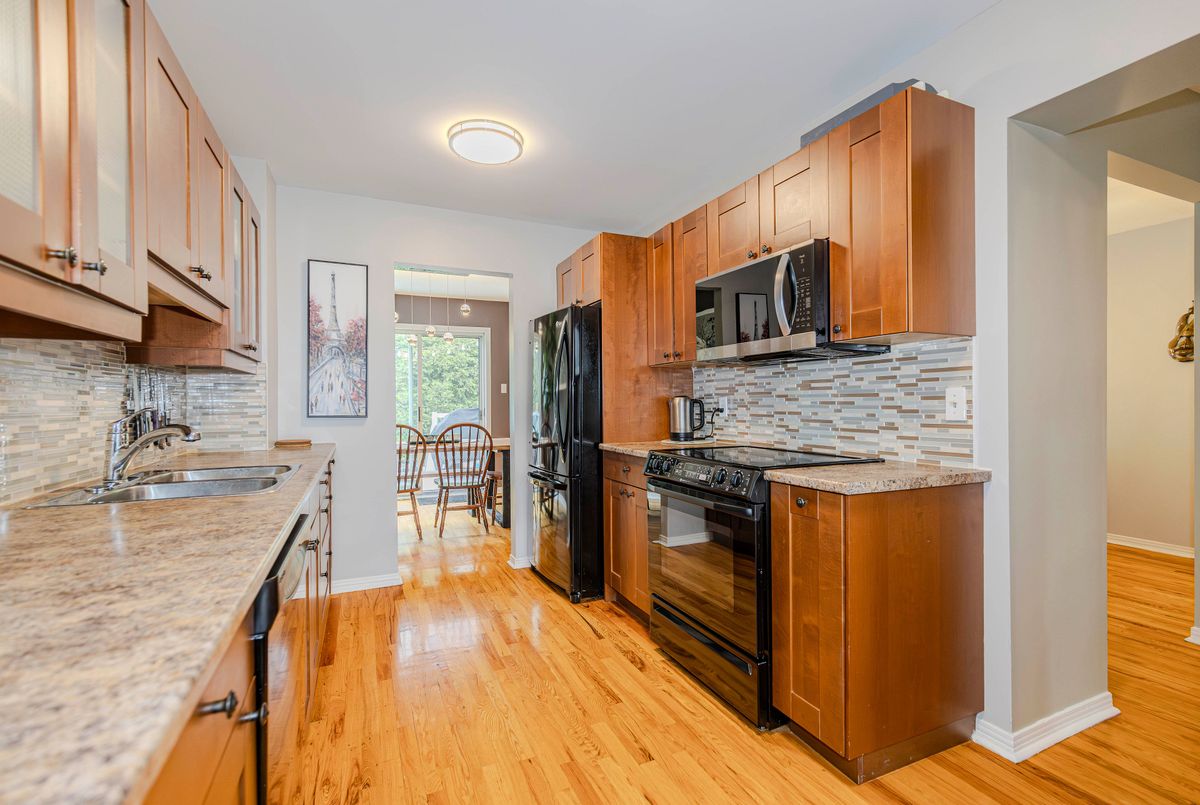 Welcome to this beautiful maintained home in the quiet, sought-after Greenboro neighbourhood.Just steps from the O-Train, with easy access to downtown, universities, Greenboro Library, sports fields, tennis courts, playgrounds, and trails,very close to the airport. Connected to its neighbour only at the garage, this home offers enhanced privacy and a detached-like feel. The second floor on the garage was added in 2022 and there's a door in the back of garage for added convenience. Inside, you'll find hardwood floors on the main level and a bright, south-facing galley kitchen with an eat-in bar. The dining room opens to a private deck and a fully fenced backyard with no rear neighbours, perennial gardens, gated access to parkland, and a hot tub (2016) with new cover and lift (2025).Upstairs features three spacious bedrooms, including a primary suite with double-sided walk-through closet. The finished basement offers a large rec room with new carpet (2025). Recent Updates:Luxury vinyl flooring upstairs (2024).Carpet on stairs & basement (2025, with transferable warranty).Updated bathrooms (2024).Fully renovated laundry room (2025).Fresh paint throughout Roof (2018) with transferable warranty.Extra attic insulation & window updates (2018) Open House: Saturday, August 2nd from 2--4 PM.This move-in-ready gem blends comfort, location, and thoughtful upgrades perfect for families, professionals, or investors.