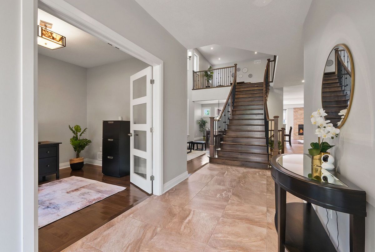Welcome to this impressive two-storey residence offering over 3,400 sq. ft. of above-grade living space, plus an additional 1,200 sq. ft. in a professionally finished basement. Thoughtfully designed with comfort, style, and functionality, every detail has been carefully curated for modern family living.The main floor boasts a bright, open-concept layout, highlighted by soaring 18-ft ceilings in the living room, custom window coverings, and designer lighting. Entertain with ease in the elegant formal dining room, stay productive in the private home office, and enjoy everyday moments in the expansive kitchenfeaturing a generous island and seamless flow into the eating area, cozy family room, and sun-filled solarium. Upstairs, the luxurious primary suite features dual walk-in closets and a spa-inspired 5-piece ensuite. Three additional bedrooms, a full bathroom, a spacious loft, and a convenient laundry room with a stainless-steel sink offer exceptional functionality for the whole family.The fully finished basement adds remarkable versatility, complete with dry-core sub flooring, a kitchenette, guest room, office, and a full bathroomideal for extended family, overnight guests, or a home-based business.Throughout the home, enjoy luxury hardwood and tile flooring, a custom staircase, and freshly painted neutral tones that elevate the overall design. Step outside into your private backyard oasis, featuring a stamped concrete patio and a charming gazebo perfect for relaxing or entertaining. The attached garage, expansive driveway, and professionally landscaped front yard with a stone walkway deliver impressive curb appeal. Ideally located near parks, top-rated schools, and recreation, this home offers the very best of indoor comfort and outdoor living. A rare opportunitythis exceptional home is a must-see!