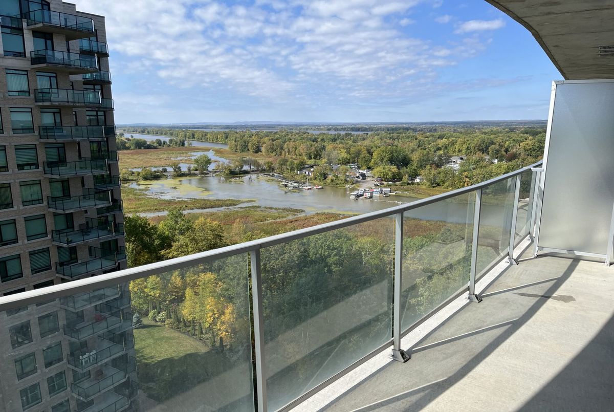 Enjoy breathtaking sunset views over the Ottawa River and Petrie Island from this stunning 1-bedroom + den condo on the 12th floor with eastern exposure.The spacious, open-concept layout is flooded with natural light through floor-to-ceiling windows.Rich hardwood and ceramic floors flow throughout the living and dining areas.A chefs kitchen features granite countertops, shaker-style cabinetry, a large island, and stainless steel appliances.The primary bedroom offers balcony access and a custom-built double closet.Flexible den space is ideal for a home office or guest room.The elegant bathroom includes a separate tub and shower, plus extra storage.In-suite laundry, tall ceilings, pot lights, underground parking, and a private locker included.Relax or entertain on the oversized balcony with serene, unobstructed water views.Resort-style amenities include a rooftop terrace, pool, gym, and party room.Steps from Petrie Island beaches, trails, and future LRT station.Live the ultimate lifestyle with front-row views of fireworks, festivals, and flyovers .
