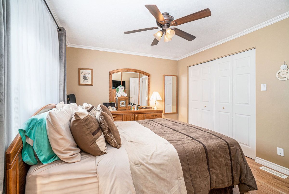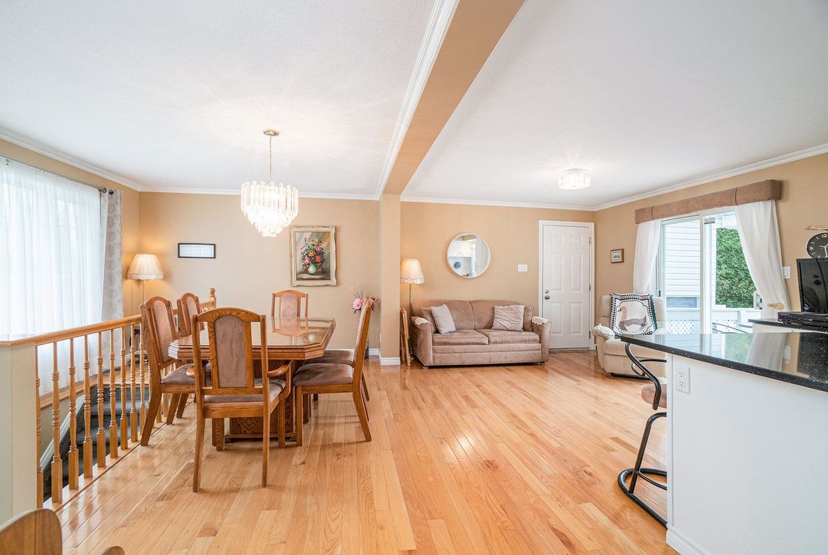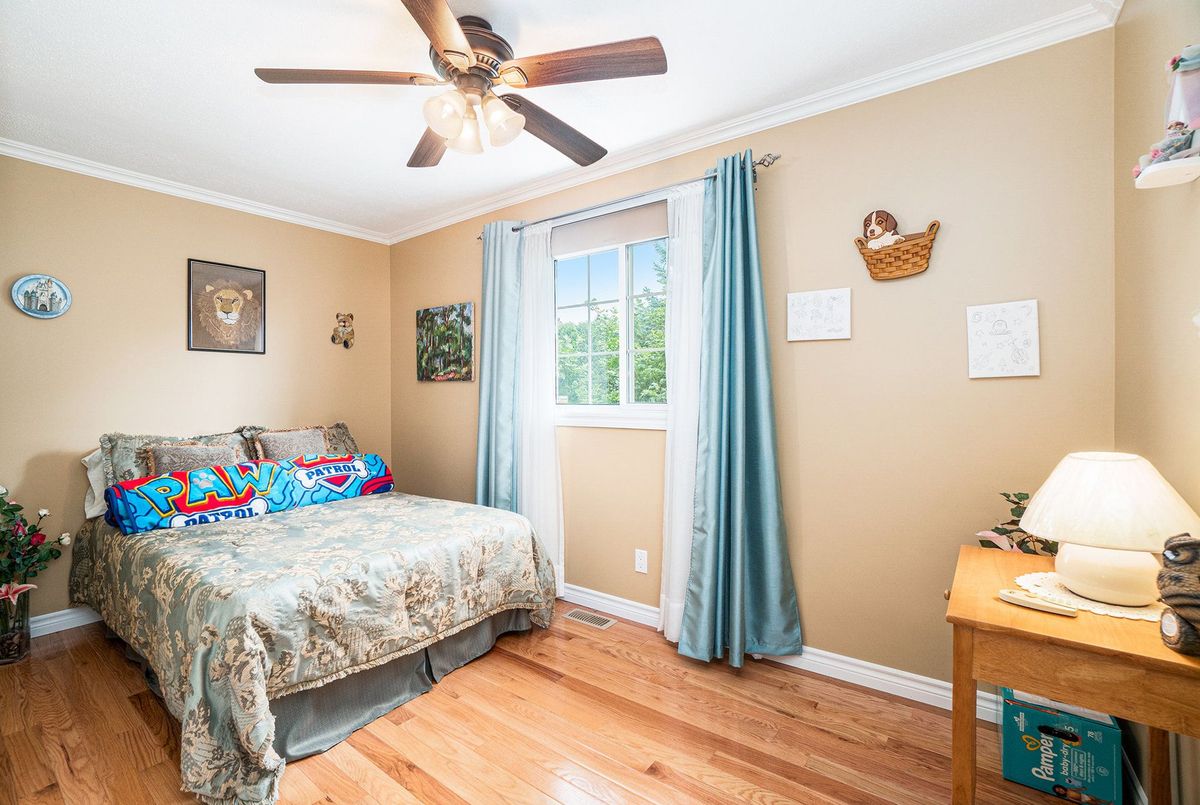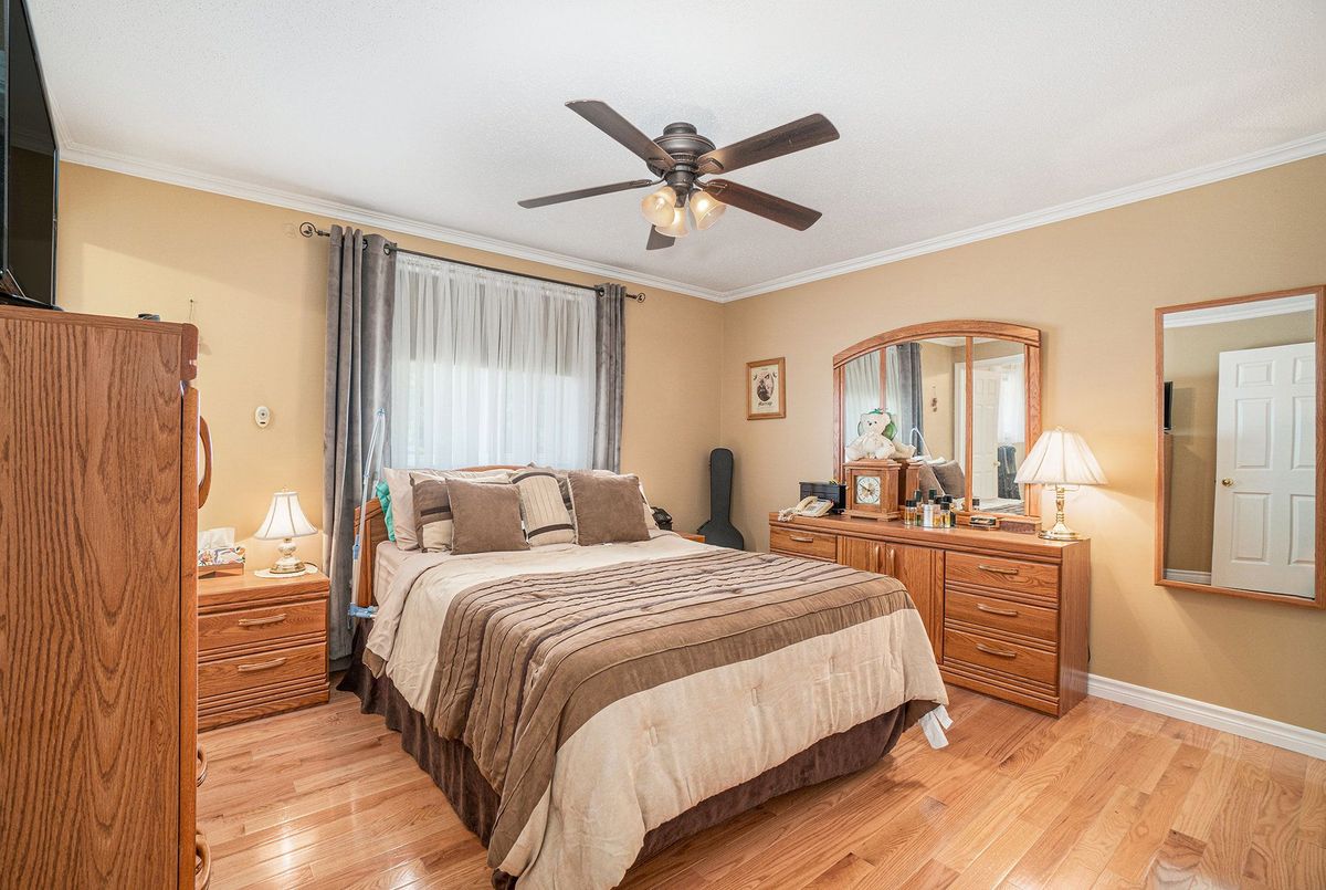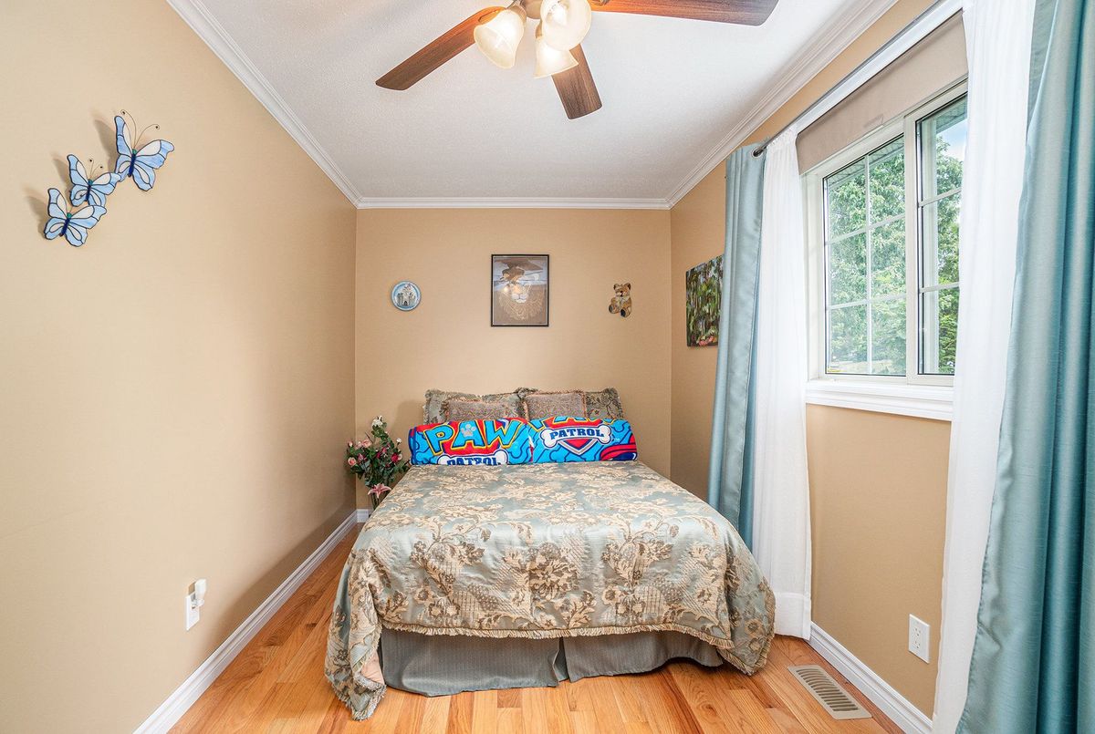 Don't miss this charming raised bungalow, nestled on a sprawling 3/4-acre lot with no rear neighbours in the highly sought after community of Metcalfe. This well-maintained 1999-built home showcases a bright open-concept kitchen, living, and dining area, ideal for effortless entertaining, with gleaming hardwood floors throughout. The kitchen boasts ample counter and cabinet space, island/breakfast bar, sleek dark quartz countertops, and a tile backsplash. The primary bedroom features a spacious 4-piece ensuite and a deep closet, while the second bedroom provides generous space and abundant natural light. A dedicated main floor laundry closet and deep front entrance closet enhance everyday functionality. Another sizeable 4pc bathroom w/ shower bath completes the main floor. The wide staircase invites you to a versatile lower level, primed for your vision with potential for 1-2 additional bedrooms and equipped with a bathroom rough-in. The oversized and insulated 2-car garage is a dream for hobbyists or storage needs. Conclude your day by unwinding on the rear deck, soaking in the tranquillity of rural living on a expansive tree-lined lot. Walking distance to several schools & parks, Larry Robinson Arena, local events, & the Metcalfe Fairgrounds. This home awaits your personal touch, book a viewing today. Updates Include: New Front Door, Pressure Tank 2024. Sump pump w alarm + battery backup 2023. Gas HWT & Furnace Feb 2021. A/C March 2022. Septic, Well, & Windows are original. Roof is approx 10 yrs old. Iron Filter & Water Softener 10 yrs old. Recent 0/0 Water Test Result