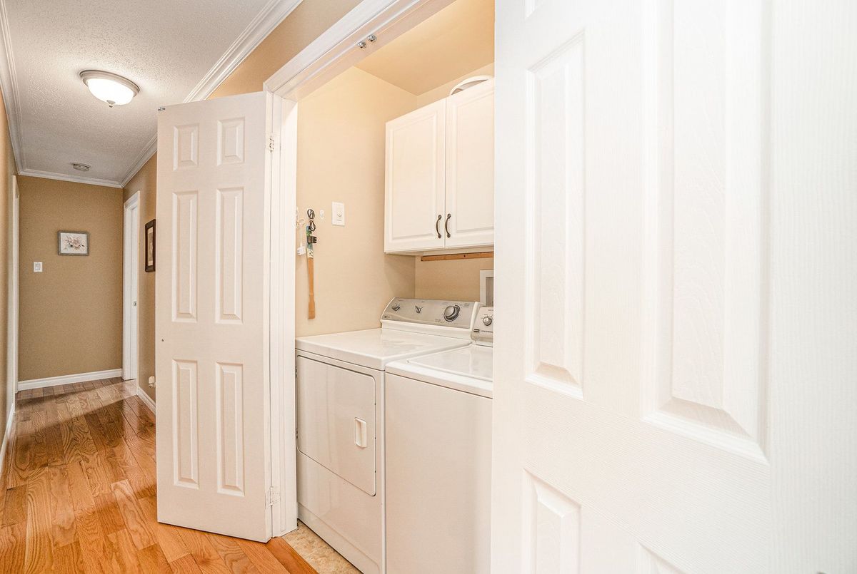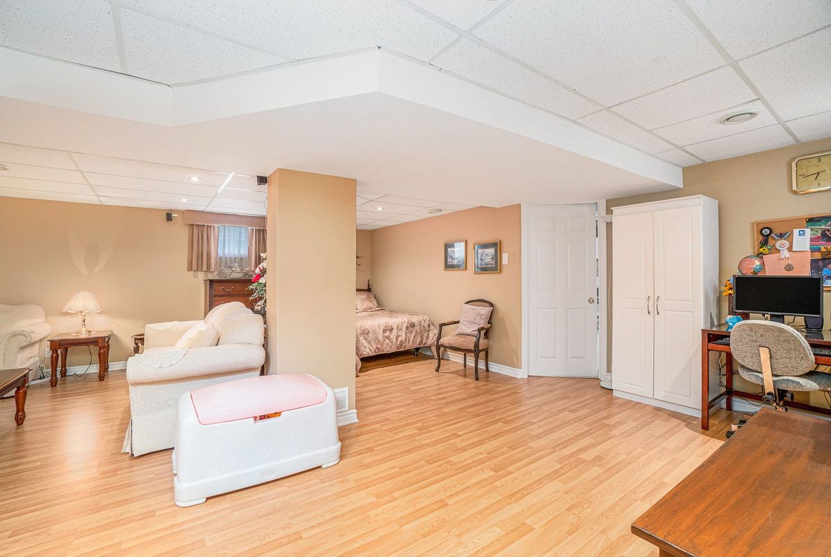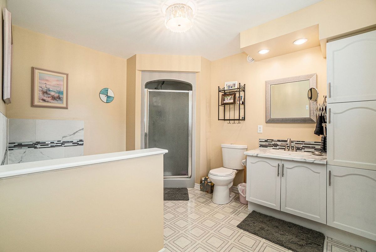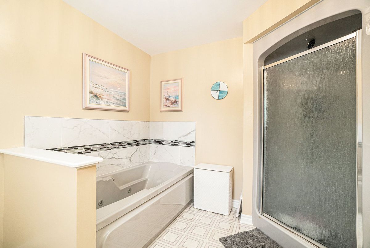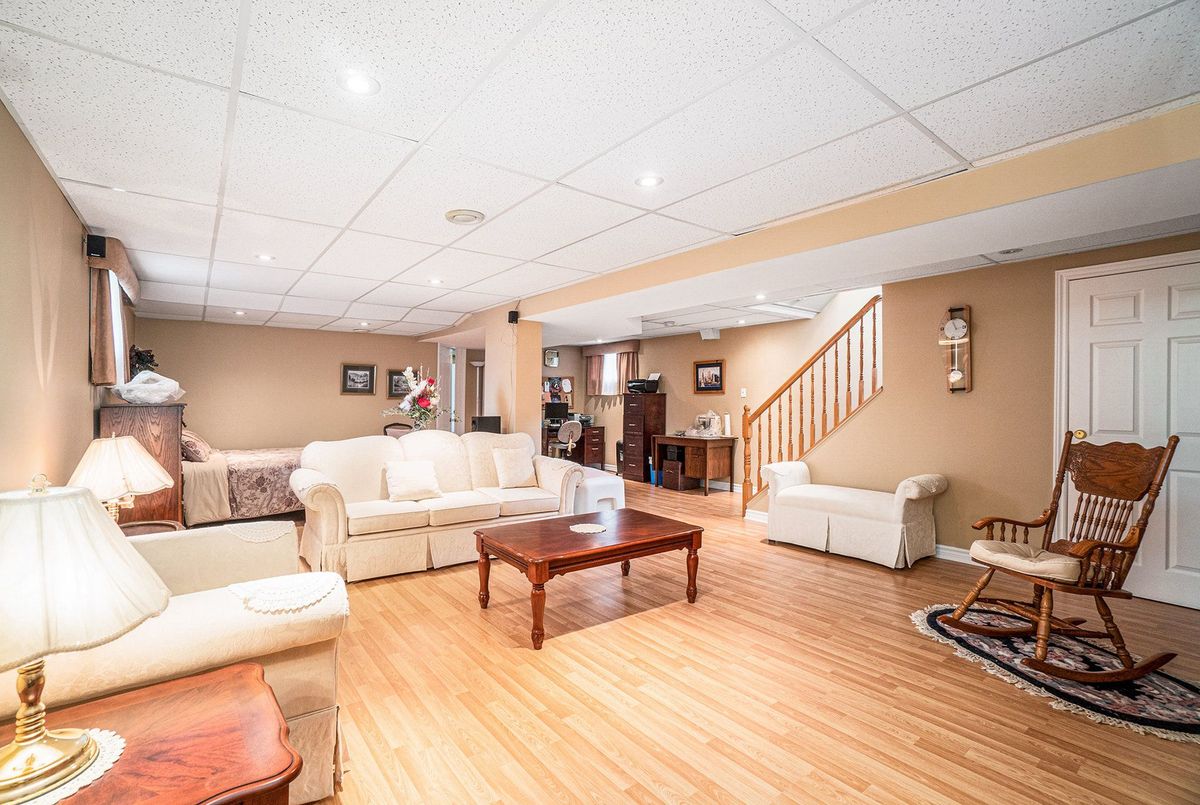Don't miss this charming raised bungalow, nestled on a sprawling 3/4-acre lot with no rear neighbours in the highly sought after community of Metcalfe. This well-maintained 1999-built home showcases a bright open-concept kitchen, living, and dining area, ideal for effortless entertaining, with gleaming hardwood floors throughout. The kitchen boasts ample counter and cabinet space, island/breakfast bar, sleek dark quartz countertops, and a tile backsplash. The primary bedroom features a spacious 4-piece ensuite and a deep closet, while the second bedroom provides generous space and abundant natural light. A dedicated main floor laundry closet and deep front entrance closet enhance everyday functionality. Another sizeable 4pc bathroom w/ shower bath completes the main floor. The wide staircase invites you to a versatile lower level, primed for your vision with potential for 1-2 additional bedrooms and equipped with a bathroom rough-in. The oversized and insulated 2-car garage is a dream for hobbyists or storage needs. Conclude your day by unwinding on the rear deck, soaking in the tranquillity of rural living on a expansive tree-lined lot. Walking distance to several schools & parks, Larry Robinson Arena, local events, & the Metcalfe Fairgrounds. This home awaits your personal touch, book a viewing today. Updates Include: New Front Door, Pressure Tank 2024. Sump pump w alarm + battery backup 2023. Gas HWT & Furnace Feb 2021. A/C March 2022. Septic, Well, & Windows are original. Roof is approx 10 yrs old. Iron Filter & Water Softener 10 yrs old. Recent 0/0 Water Test Result