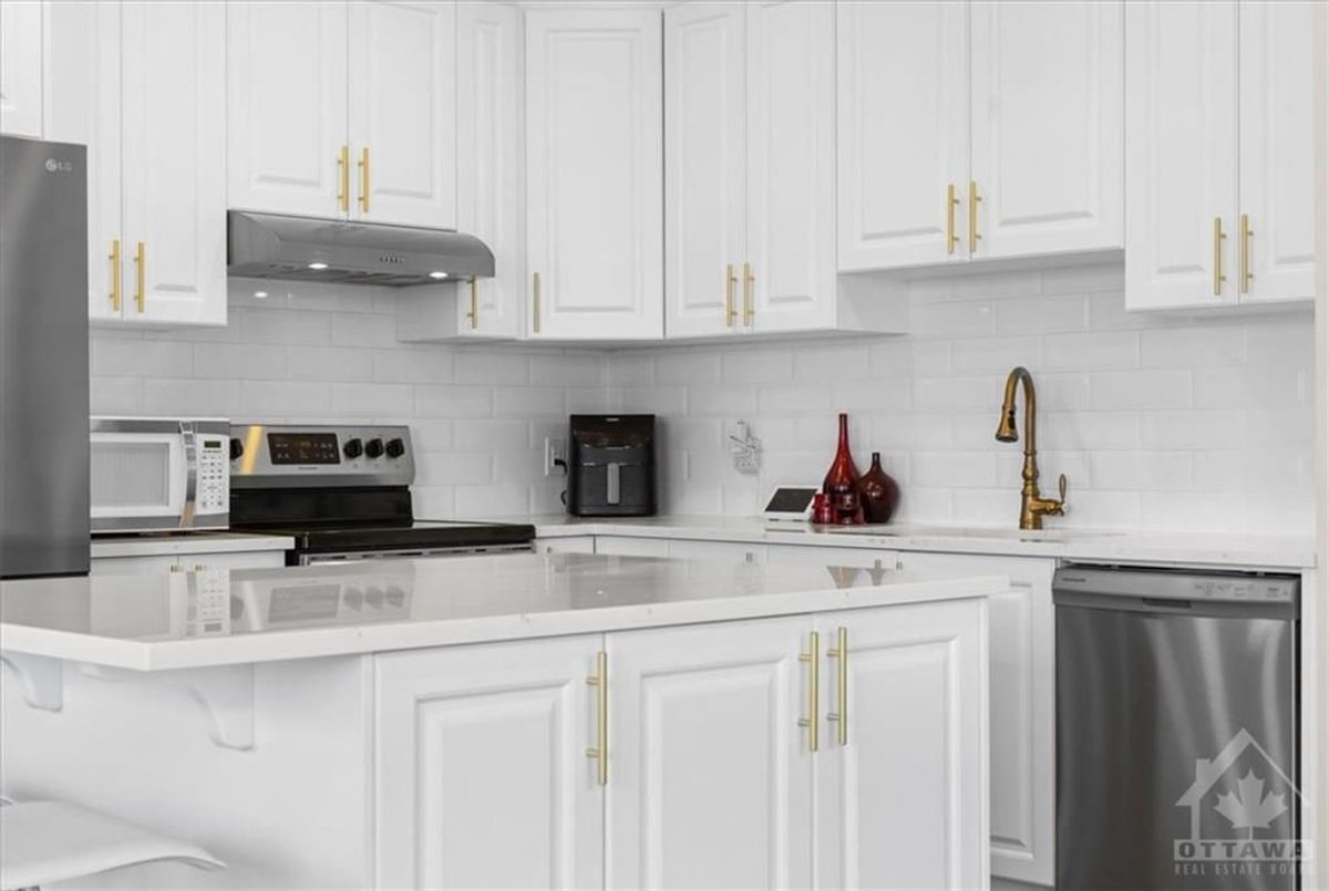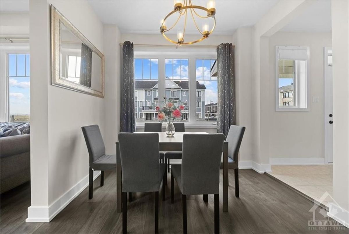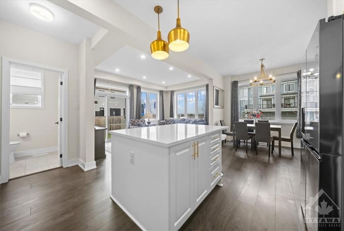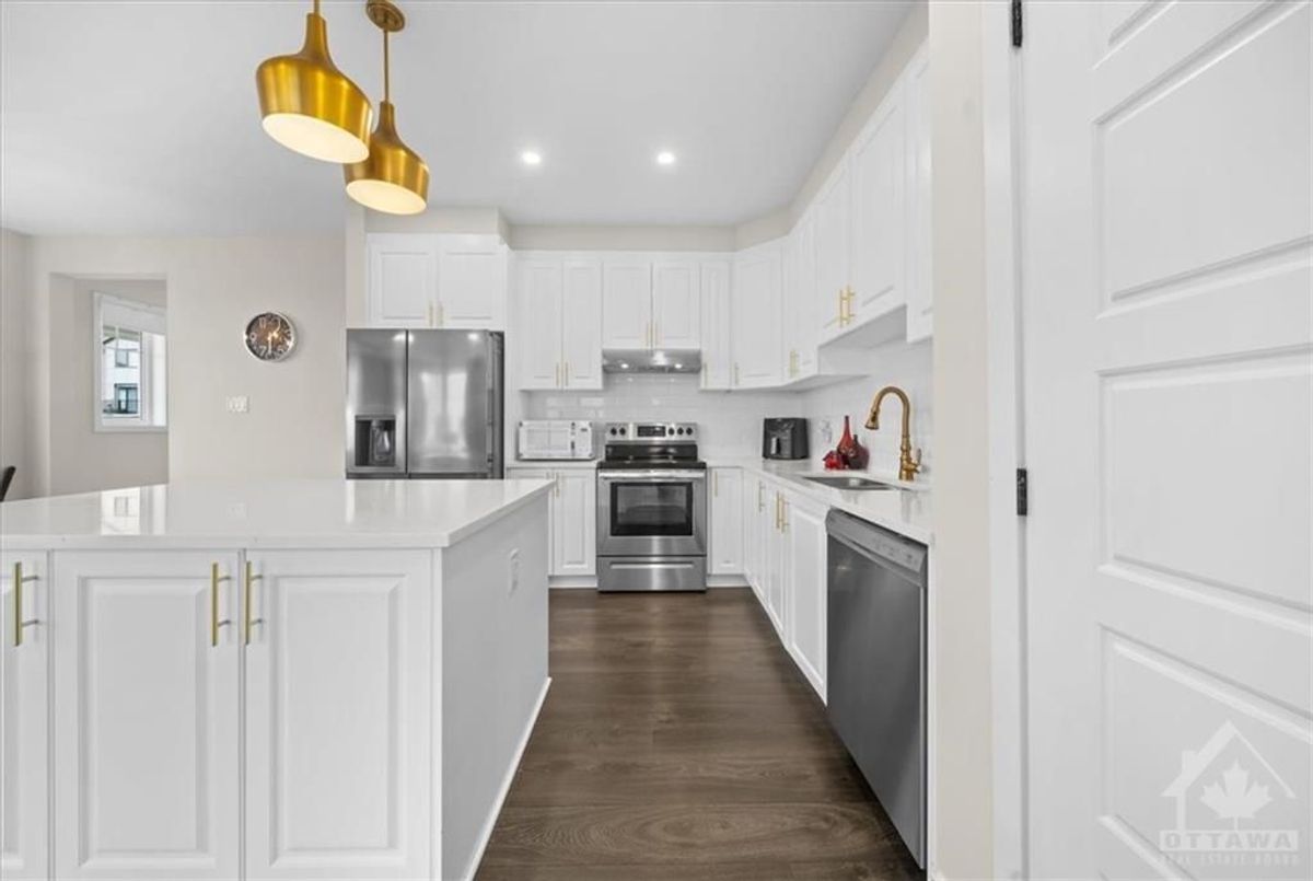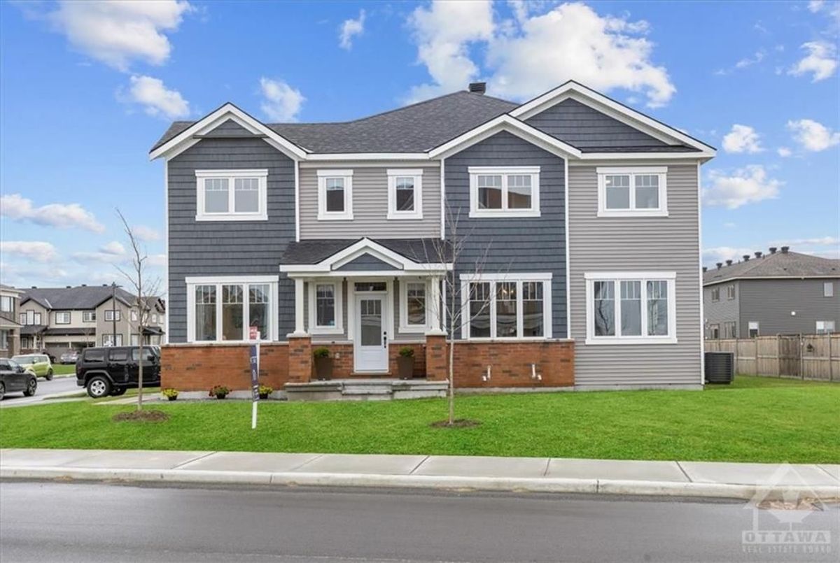 Flooring: Carpet Over & Wood, Flooring: Ceramic, Discover Premier Living in Kanata, this RARE large CORNER model has ALL the WINDOWS - fully upgraded '22 home sitting on a oversized corner lot, strategically located across the street from future shops, steps away from Outlet Mall, Costco, Tech Park, 1 minute from hwy 417 & FUTURE LRT. Situated in a master-planned community, enjoy quick access to NHL games/ concerts at CTC, Sensplex & all the new schools blended w nature. The main floor features two living rooms, providing versatile spaces for entertainment, filled w natural light thanks to the corner unit design. Chef's Kitchen: Complete w softclose contemporary cabinetry, high-end appliance package, modern undermount double bowl sinks, additional outlets and upgraded fixtures paired w matching quartz countertops throughout. The master suite oasis boasts double sink vanity w a frameless glass shower. Upstairs laundry, 2 more bedrooms & a loft offer flex space. Bsmt 3 pc rough-in for an additional full bath w window. Ready to occupy., Deposit: 5600, Flooring: Laminate Pictures are from previous listing