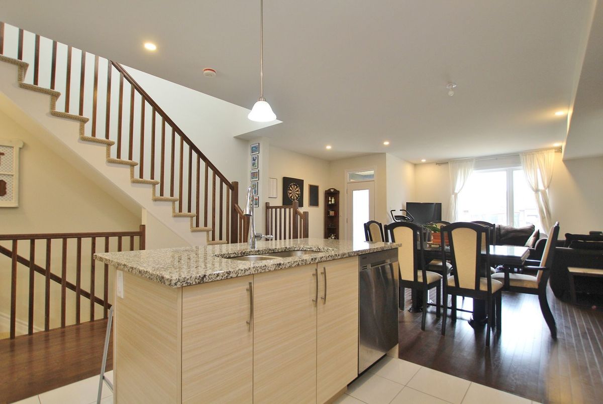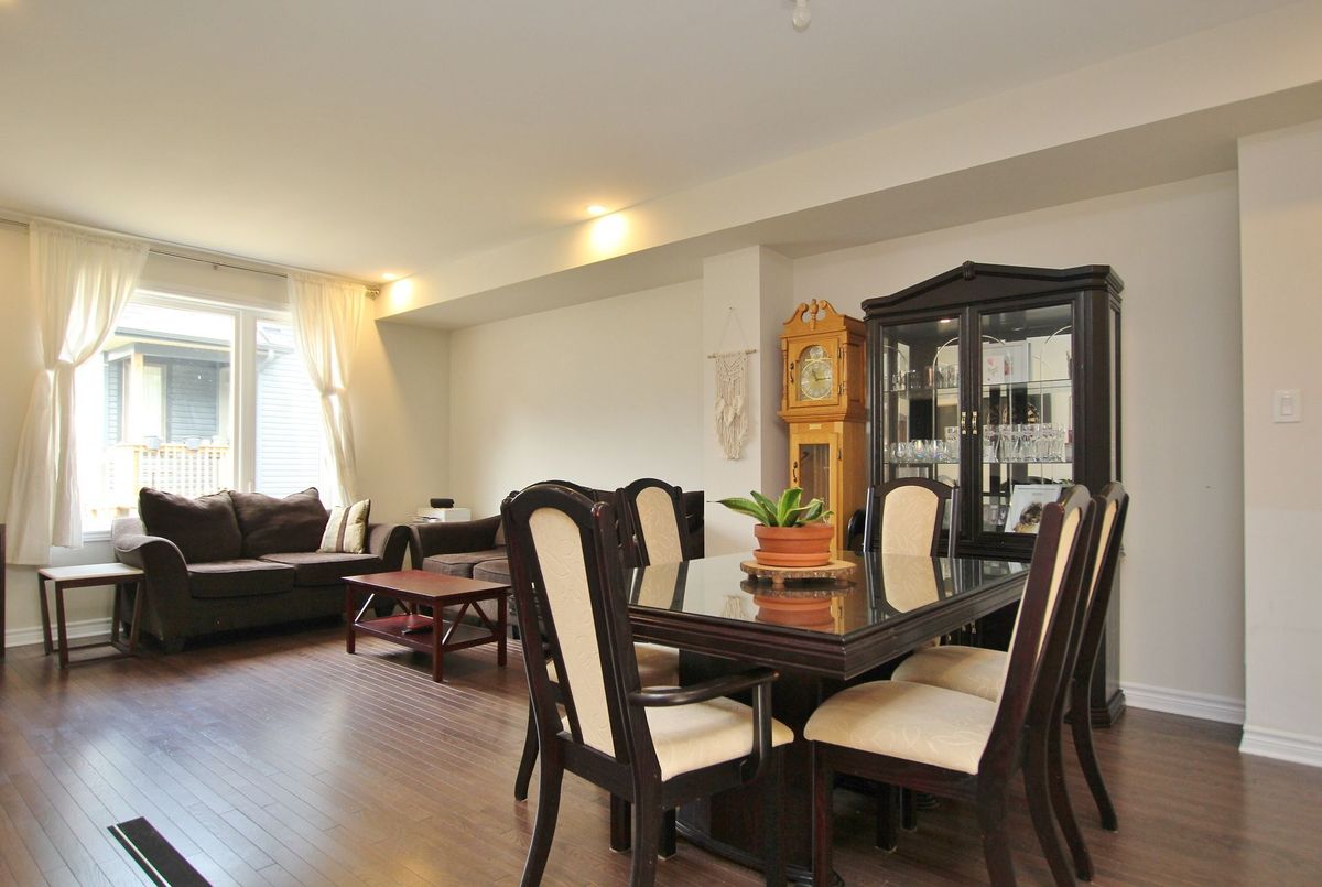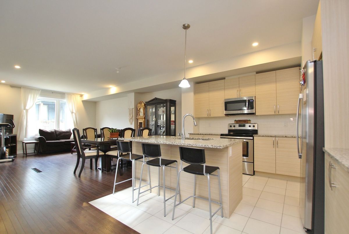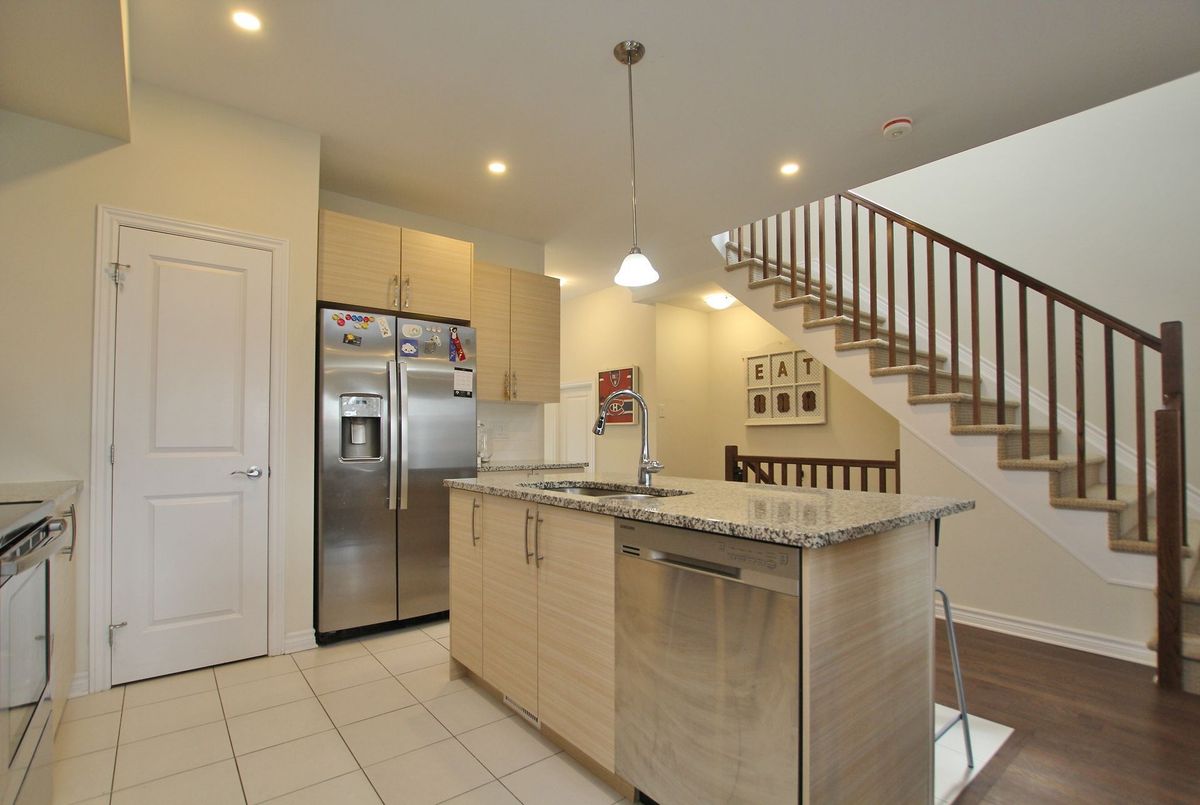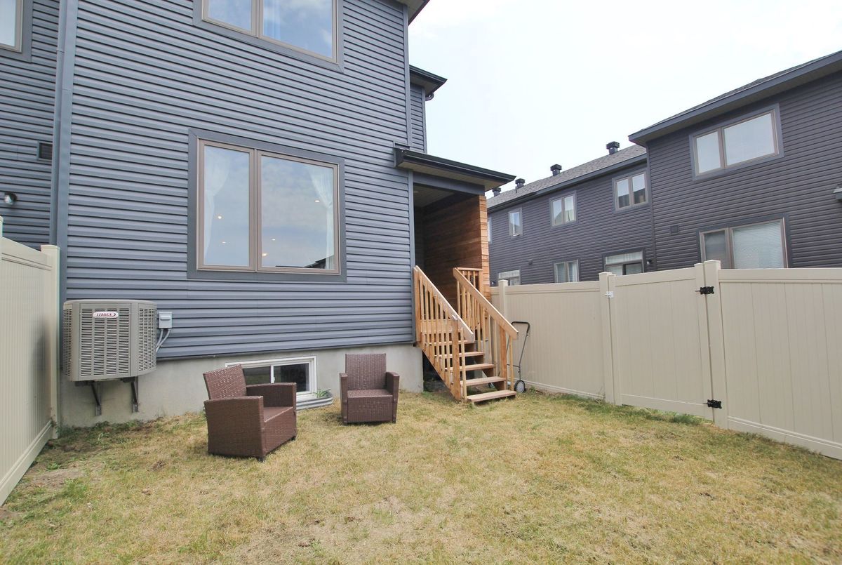 Available to lease Gorgeous END UNIT Townhome 3 bedrooms, 4 bathrooms, 2000 sqft living space! Built 2021 by eq homes. Spacious main floor features open concept layout high ceilings, living/dining, kitchen with breakfast bar, granite countertops, walk-in pantry, microwave shelf, ample cabinet counter space, powder room and a patio door leading to enclosed porch and fully fenced backyard. Second floor features large primary bedroom with ensuite having double sink and glass-enclosed shower and another additional good size two bedrooms and full bath, and convenient second floor laundry room. This house has a finished basement with a huge recreation room with oversized window, upgraded full 3pcs bath and storage. Located on a quiet street in family in friendly neighborhood near schools, parks, shopping, and amenities. Excellent location for a growing family and Ready to move immediately