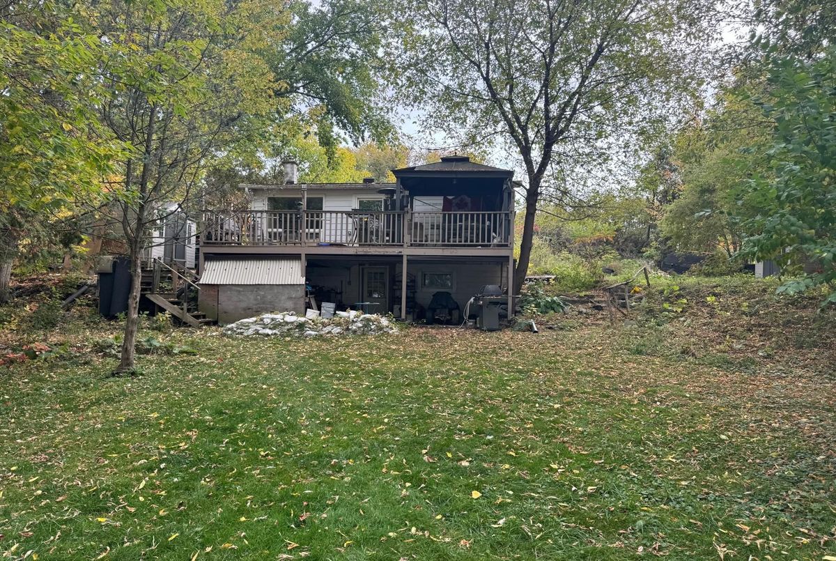 Beautiful treed waterfront property. Hi Ranch Bungalow needs total renovation, 2 bedrooms upstairs and 1 bedroom on the lower level, with two bathrooms. Property needs new Septic Tank. Is being sold for Land Value.