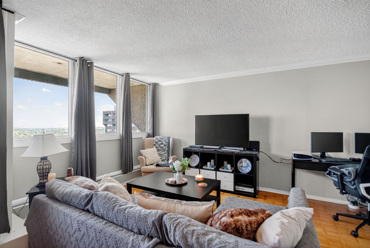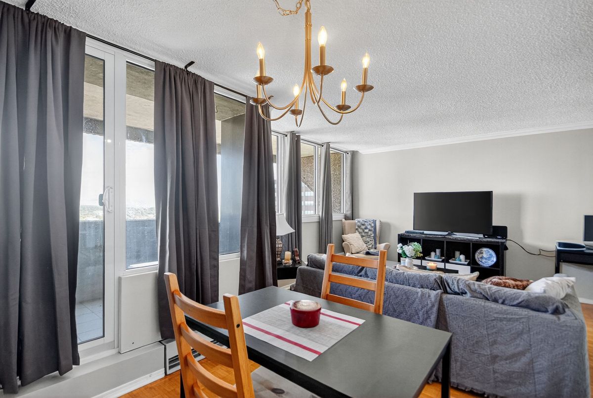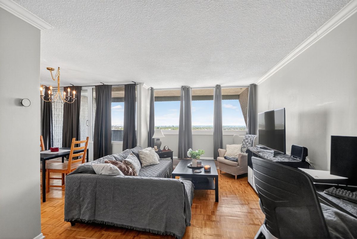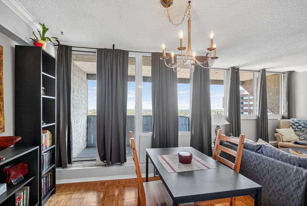 Updated & well maintained 2-bedroom condo apartment in popular Strathmore Towers, South keys. This unit is tastefully updated with modern fixtures and finishes throughout. Enjoy a spacious floorplan with a large living room, adjacent dining room, enclosed eat-in kitchen with newer appliances. Nicely updated kitchen with newer appliances, quartz countertops, and ceramic flooring; wood flooring throughout the main living areas; updated bathroom; fresh and neutral palette throughout. The two bedrooms are spacious, with abundant closet space. Convenient in-unit laundry. Enjoy lovely city views from the 19th-floor patio. Reasonable condo fees include include heat, electricity, and water. Controlled access and underground parking provide security. Walking distance to the South Keys Shopping Centre, transit, dining, shops, and theatres. Commuters enjoy efficient access to the airport, Carleton University, Centretown and Byward lifestyle offerings, University of Ottawa, and more. Excellent building amenities include: guest suite, outdoor heated pool, sauna, library, workshop & party room. Updates: air conditioning unit 2025; washer/dryer 2024; dishwasher 2023; stove 2025. Make your move!