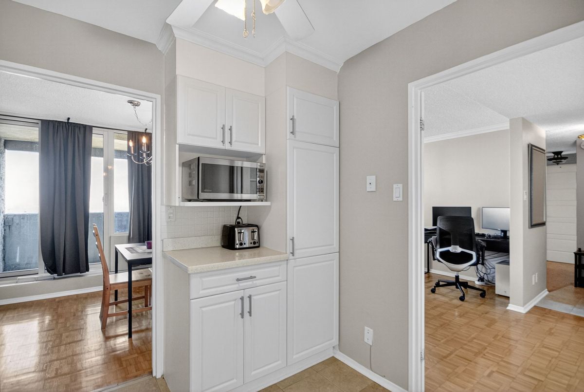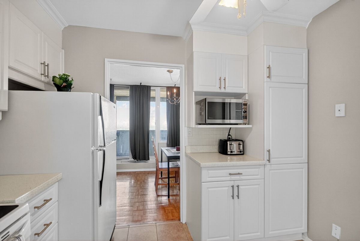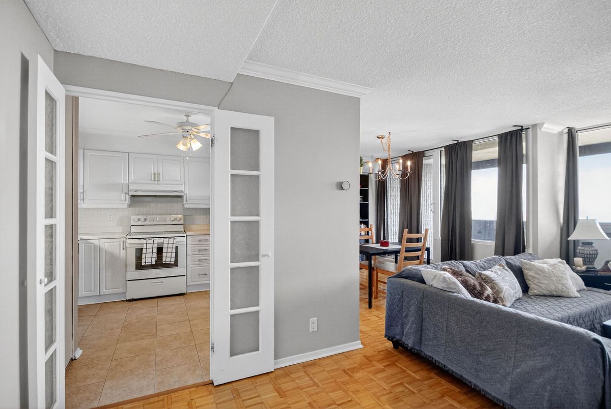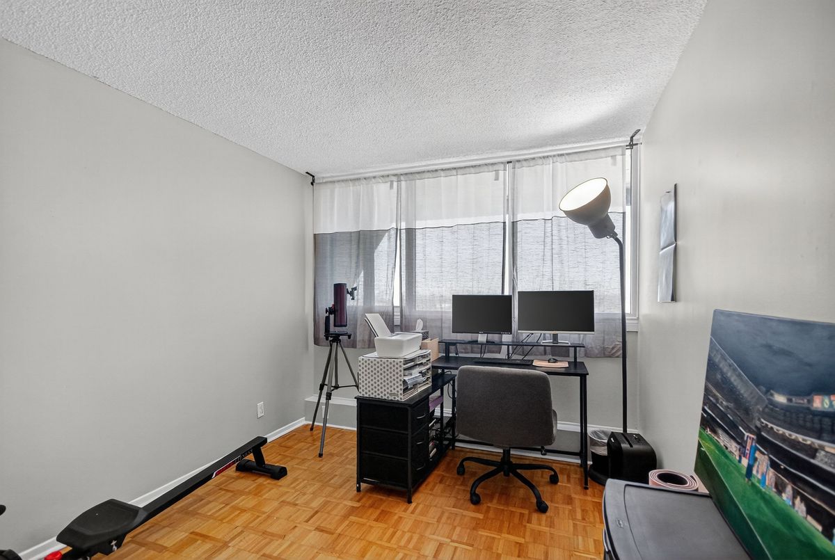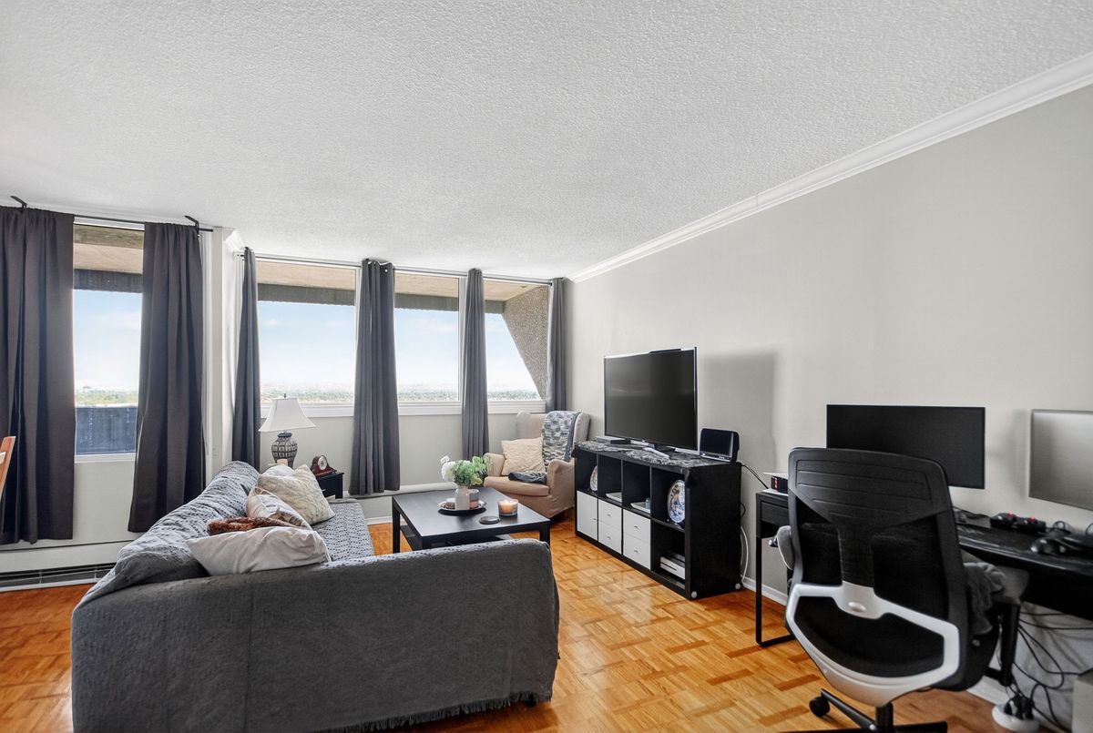 Updated & well maintained 2-bedroom condo apartment in popular Strathmore Towers, South keys. This unit is tastefully updated with modern fixtures and finishes throughout. Enjoy a spacious floorplan with a large living room, adjacent dining room, enclosed eat-in kitchen with newer appliances. Nicely updated kitchen with newer appliances, quartz countertops, and ceramic flooring; wood flooring throughout the main living areas; updated bathroom; fresh and neutral palette throughout. The two bedrooms are spacious, with abundant closet space. Convenient in-unit laundry. Enjoy lovely city views from the 19th-floor patio. Reasonable condo fees include include heat, electricity, and water. Controlled access and underground parking provide security. Walking distance to the South Keys Shopping Centre, transit, dining, shops, and theatres. Commuters enjoy efficient access to the airport, Carleton University, Centretown and Byward lifestyle offerings, University of Ottawa, and more. Excellent building amenities include: guest suite, outdoor heated pool, sauna, library, workshop & party room. Updates: air conditioning unit 2025; washer/dryer 2024; dishwasher 2023; stove 2025. Make your move!