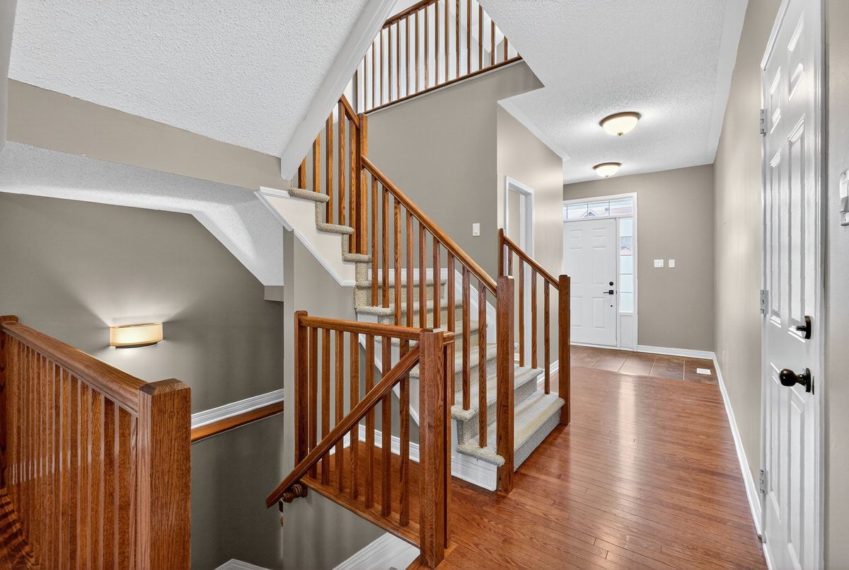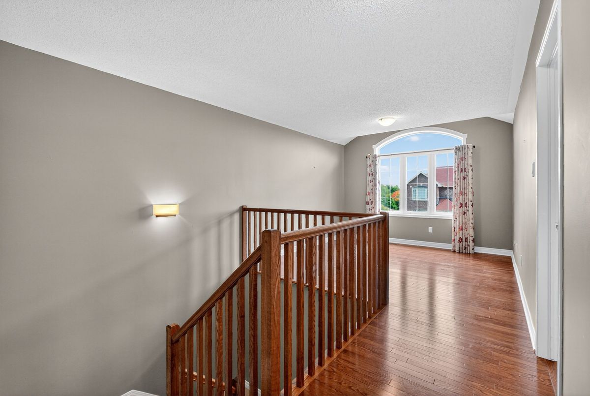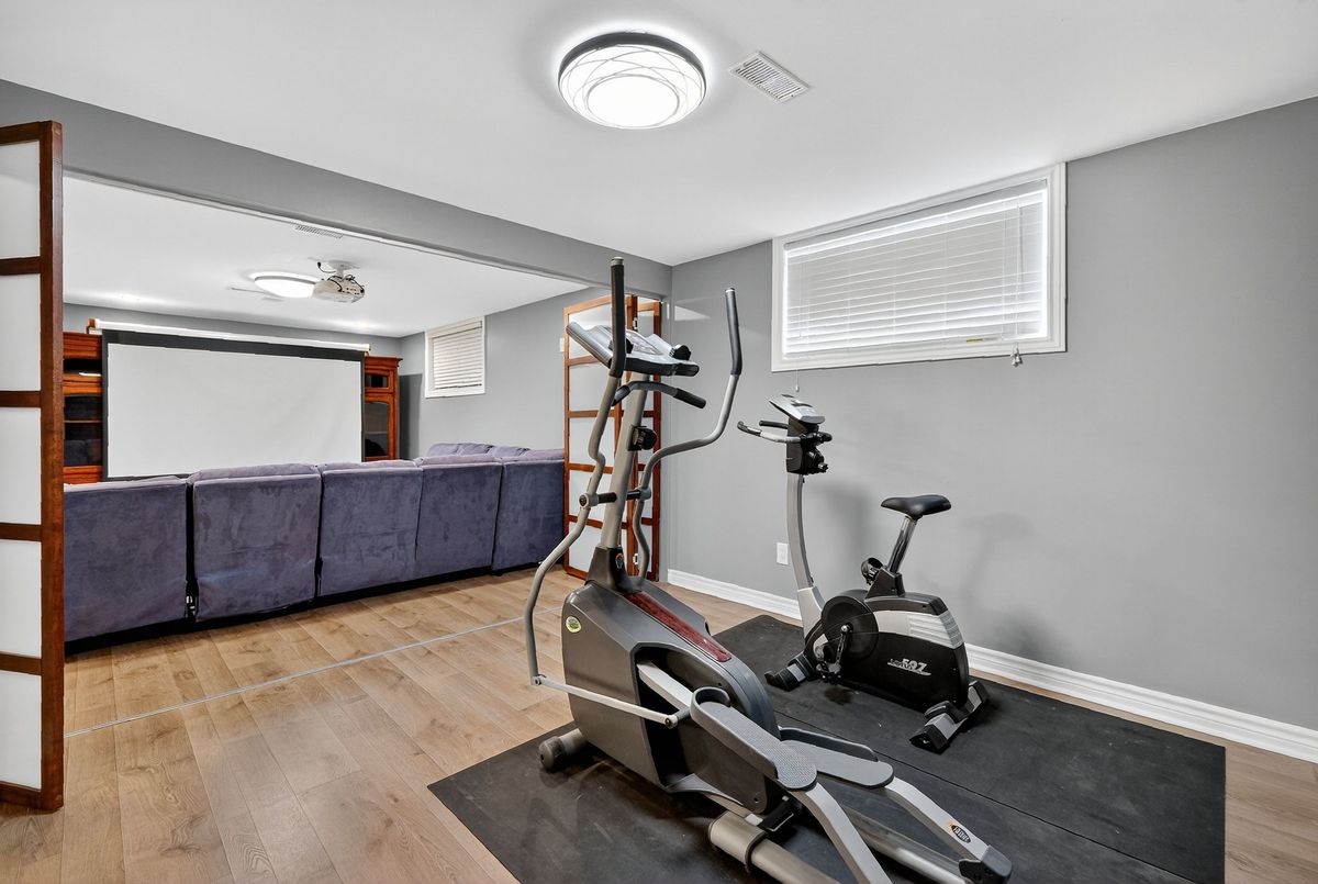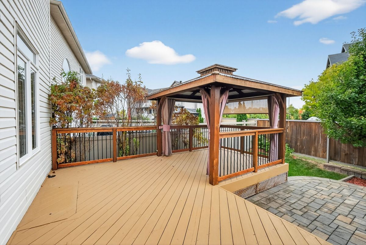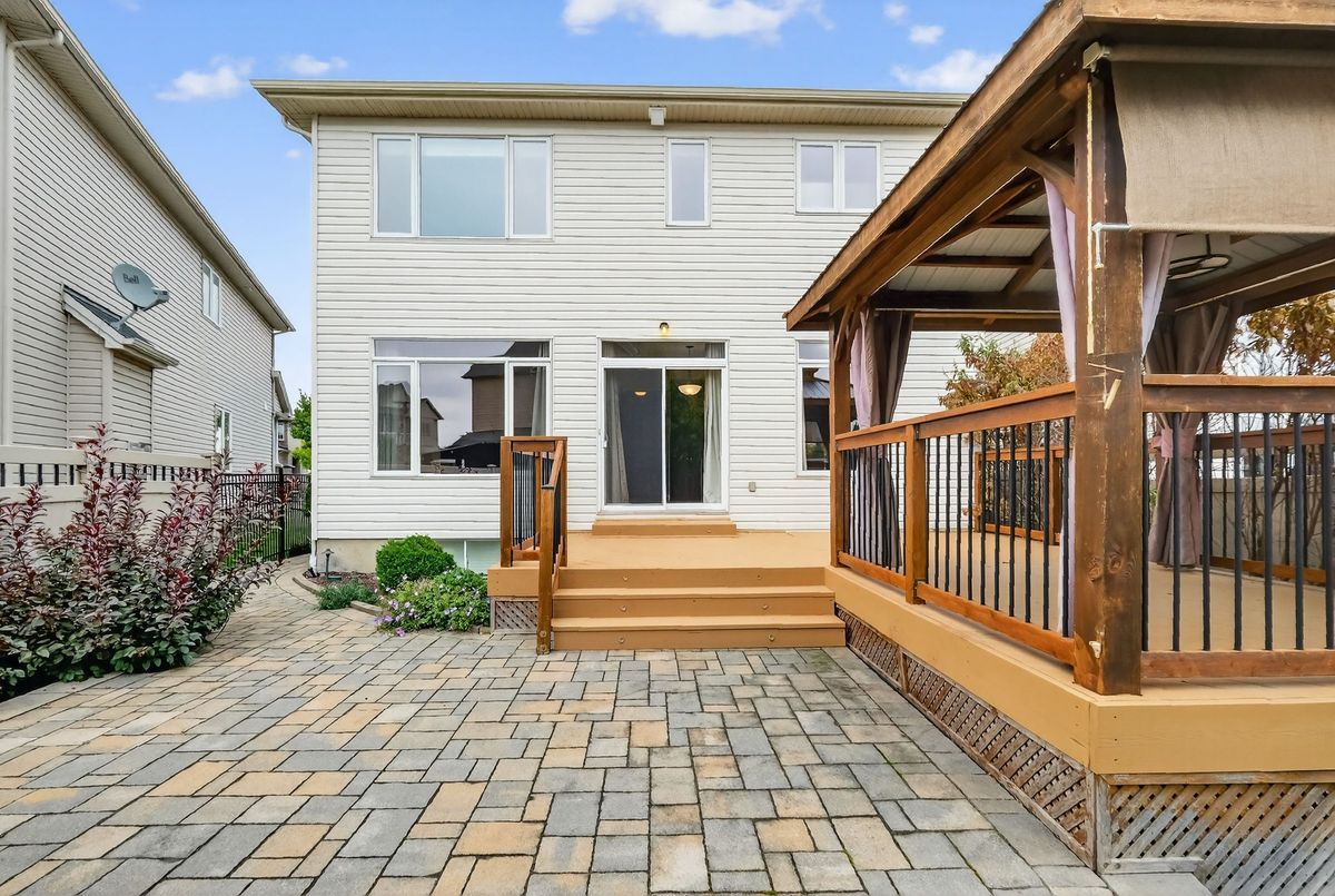 Welcome to this beautiful 4-bedroom + loft home, where comfort meets functionality. The inviting foyer opens to a formal living room and flows seamlessly into the bright, open dining area. The spacious eat-in kitchen, complete with a center island, is perfect for cooking and entertaining, and overlooks the adjacent family room with its cozy gas fireplace.Step outside to a landscaped backyard designed for relaxation and gatherings, featuring interlock, a deck, a gazebo, and a storage shed.Upstairs, the generous primary suite offers a walk-in closet and a private ensuite. Three additional bedrooms, a full bathroom, and a versatile loft/sitting area provide plenty of room for family, guests, or a home office.The fully finished basement extends your living space with a large recreation room, dedicated movie area, wet bar, exercise space, stylish full bathroom, and a separate workshop perfect for entertaining or hobbies.Additional highlights include hardwood floors, a main-floor powder room, and an attached garage with inside entry. Ideally located near shopping, parks, and public transit, this home blends style, space, and convenience.