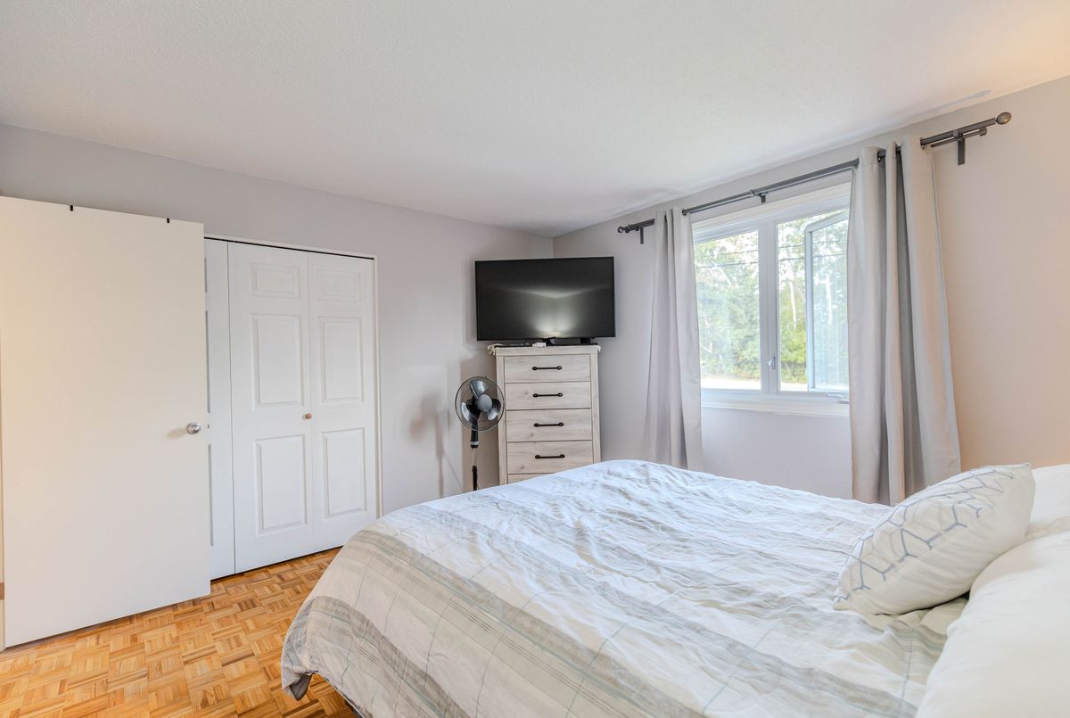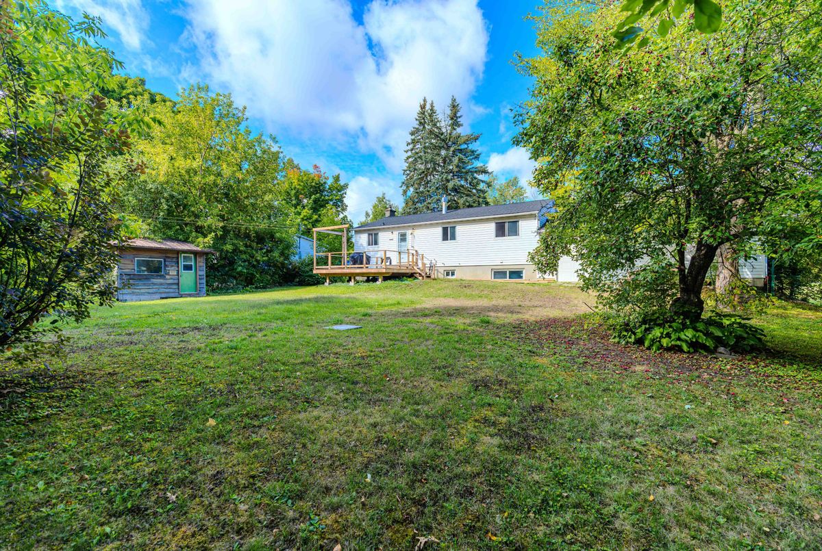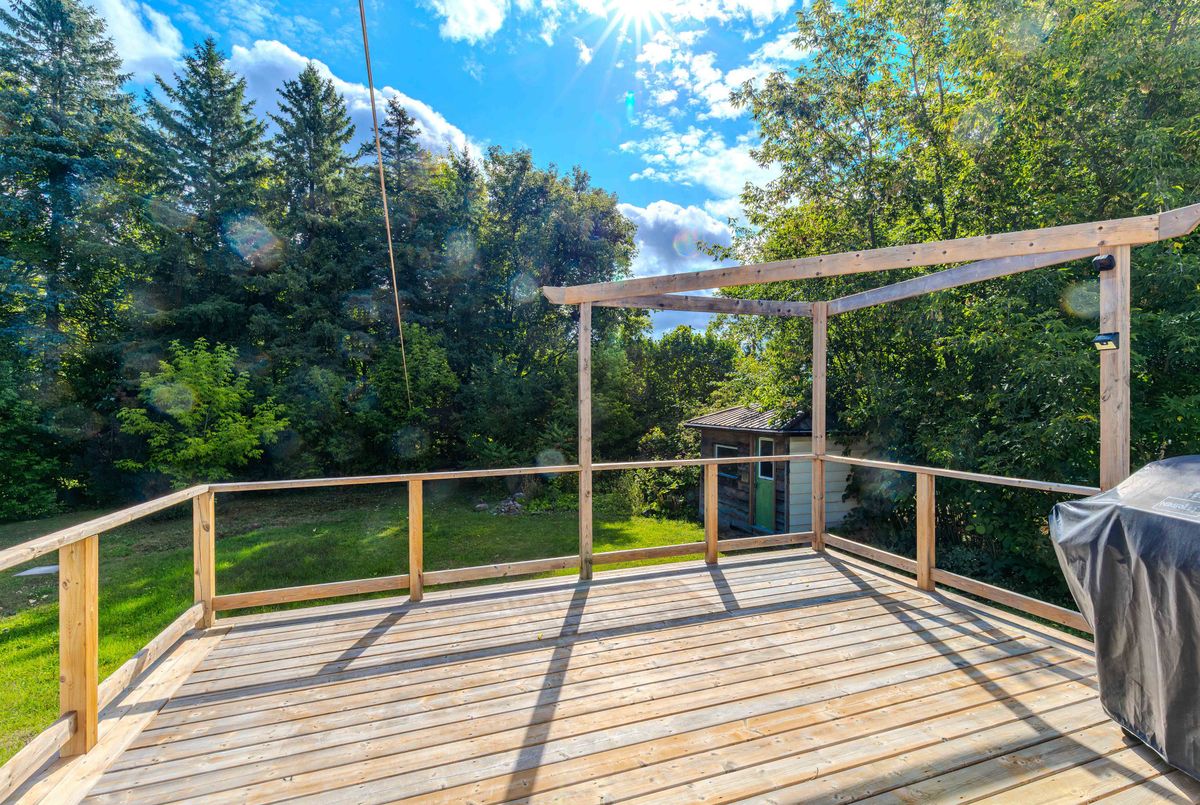 Nestled near the Village of Manotick, Carleton Golf & Yacht Club, Manotick Marina, and highly regarded schools, this delightful family residence sits on a generous 100' x 163' lot. The main level presents three bedrooms, a full bathroom, and a sun-filled open-concept living and dining space. The kitchen, complete with an eat-in area, is ready for your personal touch and offers direct access to the expansive deck (2020)ideal for year-round barbecues and summer entertaining.The finished lower level showcases a warm family room with a wood stove, a 3-piece bathroom, and a refreshed bedroom (2020) with pot lights and durable vinyl flooring, perfectly suited as a guest suite or home office.Outdoors, enjoy the private backyard framed by mature trees. The oversized double garage (28' x 23') includes an additional rear garage door for easy access to the yardperfect for ride-on mowers and more. A convenient storage shed adds further functionality.