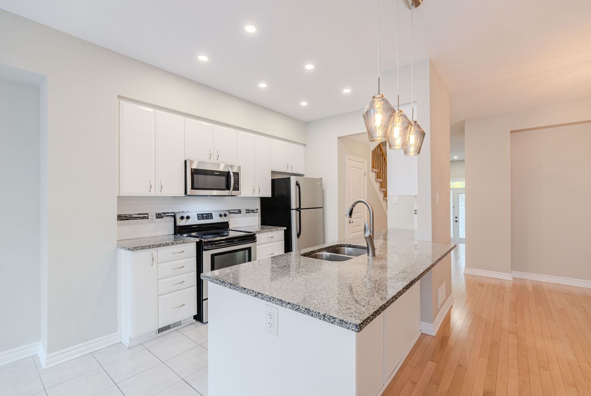 Charming 4-bedroom Richcraft townhouse in the highly sought-after Kanata Lakes community! This beautifully maintained home offers a spacious open-concept layout with 4 bedrooms and 2.5 bathrooms, perfect for modern family living. The main floor features 9-foot ceilings and is tastefully upgraded with high-end finishes throughout, including granite kitchen countertops, a touchless faucet, pot lighting, modern light fixtures, and ceiling fan lights. Additional features include window blinds, a rear deck, and a fully fenced yard. For your comfort and convenience, the home comes equipped with central air conditioning, central vacuum, and an automatic garage door opener. Ideally located just minutes from top-rated schools - Stephen Leacock (25/3032) and Earl of March (8/689) - as well as recreation facilities, public transit, golf courses, and the Kanata Centrum shopping centre.