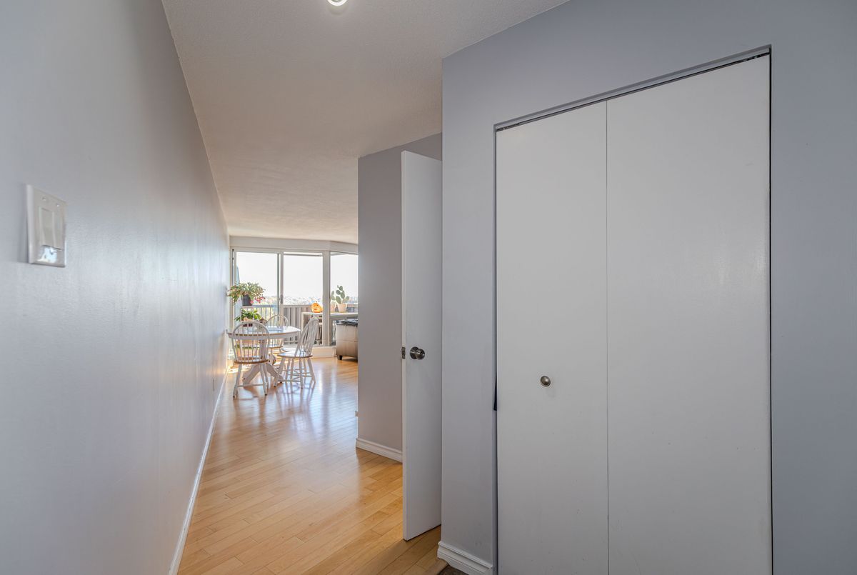 Immaculate 2-Bedroom Condo with Stunning Views of Mooney's Bay!Located in the highly desirable Hogs Back community, this bright 9th-floor unit offers the perfect blend of comfort, convenience, and scenery. Just steps away from Carleton University, OC Transpo, parks, the beach, shopping, and scenic walking trails. Featuring T&G-hardwood flooring, an open-concept living and dining area, a functional kitchen, two spacious bedrooms, and a full 4-piece bathroom. Step out onto the large southeast-facing balcony to enjoy the tranquil views of Mooney's Bay and the surrounding greenery.The well-managed building offers excellent amenities, including an indoor pool, sauna, library, workshop, and laundry facilities. One underground parking space (#B241) is included.Ideal for first-time buyers, investors, or downsizers seeking low-maintenance living in a prime location - this condo truly delivers comfort and value with a view!