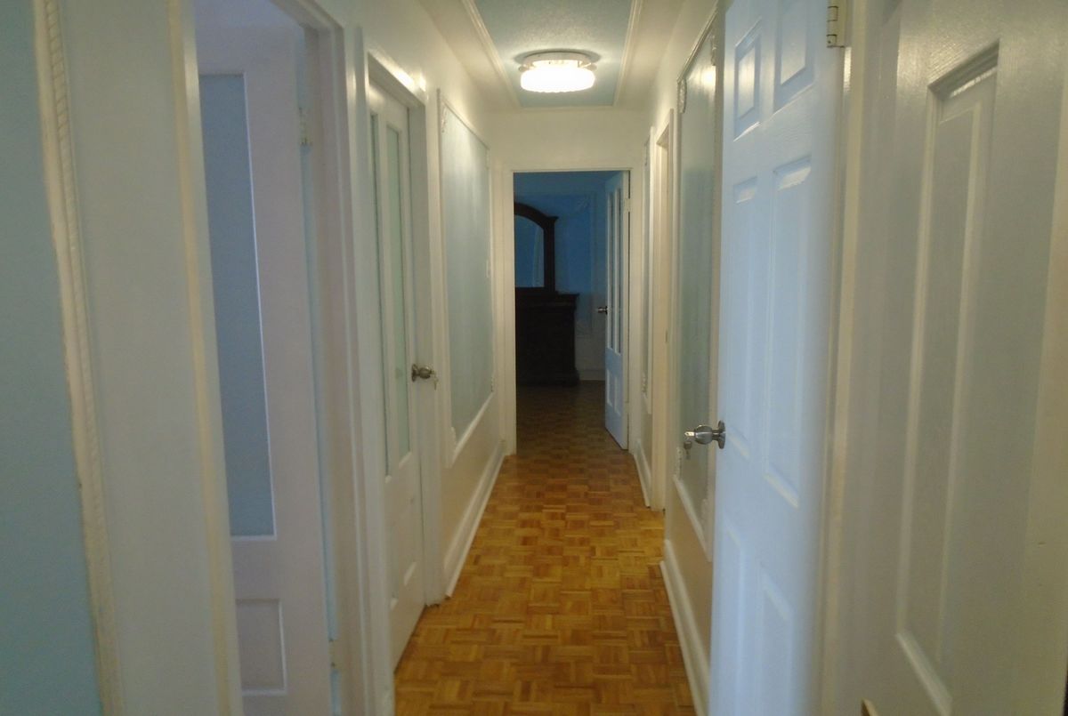 Large 3 bedrooms... 2 bathrooms 1289 sq.ft...Parquet flooring.. Lots of upgrades...must be seen to be appreciated on the upscale trims and hardwood doors and frames..Large windows allowing bright sun filled room, large remodeled kitchen top of the line cabinets..all new appliances,crystal chandeliers.All special assessments paid in full.Facing South...LAUNDRY ROOM ON EACH FLOORS..