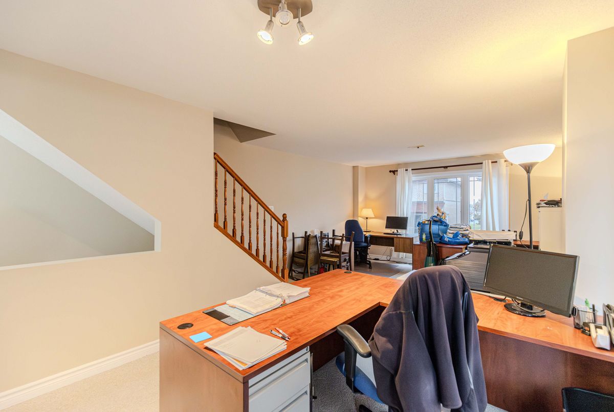 Welcome to 160 Paseo Private, a beautifully maintained three-level condominium townhouse located in the heart of Centrepointe, Nepean. Built in 2008 and offering nearly 1,400 sq. ft. of living space, this home combines modern comfort with an unbeatable location. The open-concept main level features a spacious living and dining area, a chef-inspired kitchen with extended countertops, a full pantry wall, and patio doors leading to a balcony. A convenient powder room completes this floor.Upstairs, the primary bedroom impresses with vaulted ceilings, a wall of closets, a private balcony with sunset views, and a full ensuite bath. The second bedroom has cheater-ensuite access to another full bathroom, along with a laundry/utility area and a storage room on the same level. The top-floor loft provides versatile space-ideal as a home office, media room, or third bedroom.Parking spot #104 right at your doorstep, and plenty of visitor parking. The monthly condo fee $397.67 covers road and walkway maintenance, snow removal, landscaping, building security, janitorial services, waste disposal, and insurance for common areas. Situated steps from Centrepointe Park, College Square shopping, Ben Franklin Place, the Ottawa Public Library, Meridian Theatre, and public transit, this property offers both lifestyle and convenience. Close to Algonquin College, Hwy 417, and multiple shopping centers, it's perfect for homeowners and investors alike.