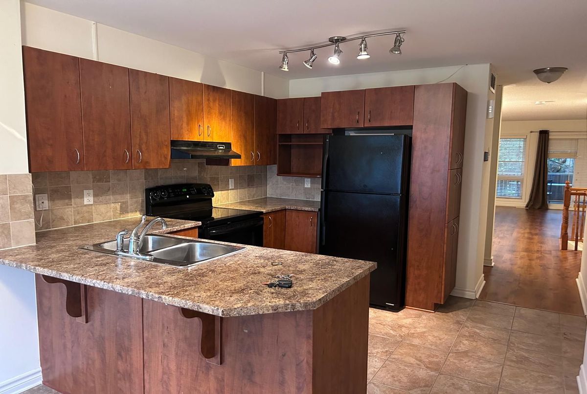 Welcome to 2 story lower Terrace home with 2 bedrooms, 3 bathrooms for rent with no rear neighbors located in the bustling center of Centrepoint backing onto Park (approx 1256 sq. ft.) . This move in ready home boasts a large eat-in kitchen w/ample cupboards, counter tops and pantry. Open concept dining and living rooms and patio door to backyard/terrace overlooking the Park in a serene setting perfect for BBQing. Hardwood floors on the main level. Primary bedroom with ensuite bath and wall to wall closet. Second bedroom also have ensuite bath and large windows with plenty of natural light. Laundry and storage conveniently located near bedrooms. Central Air. One exterior parking spot included. Close to Shopping, Recreation, Schools, Algonquin College, Parks and Transit.