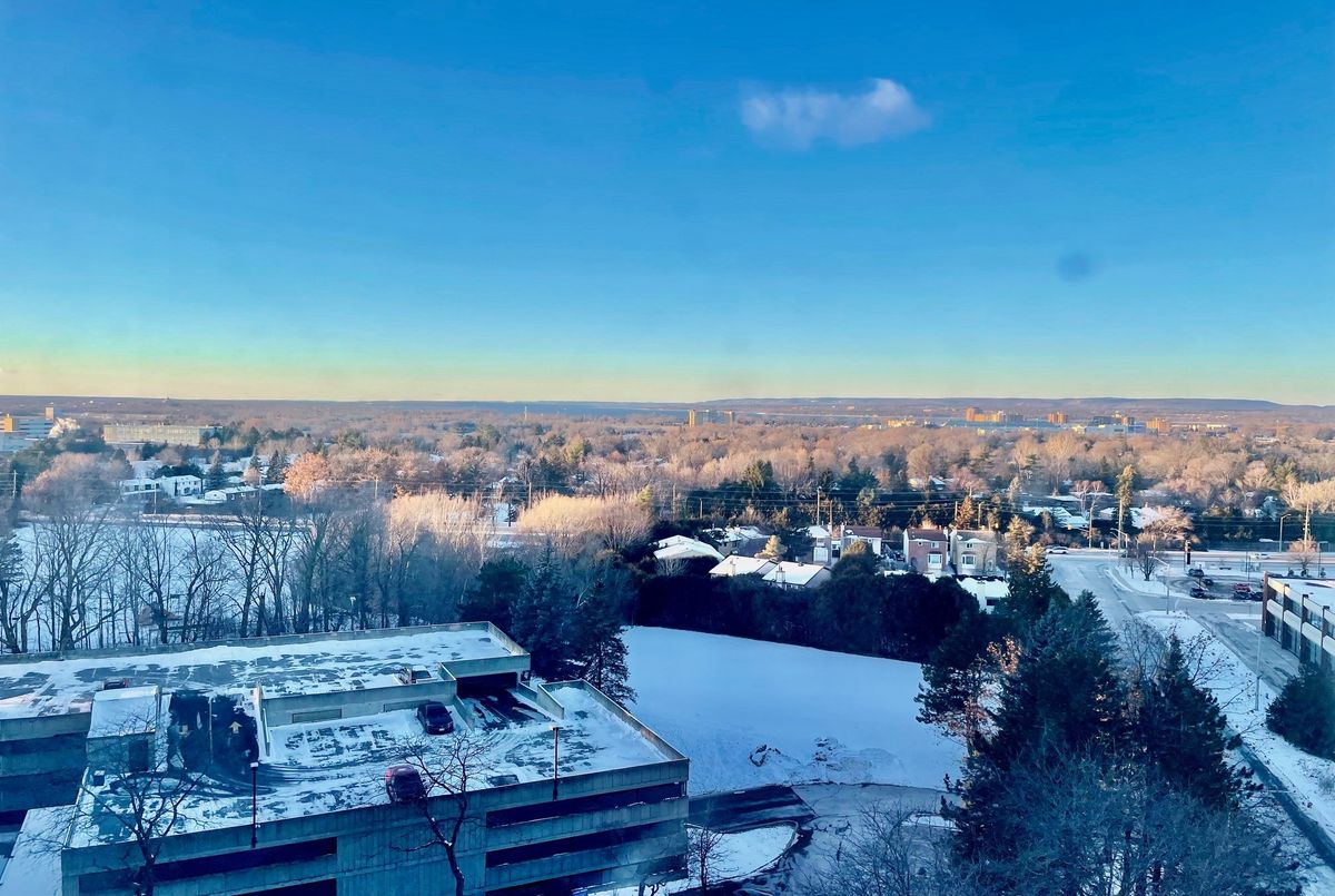 Panoramic 180 degree views of Ottawa River, Gatineau and the city! Top floor Corner 2 bdrm/2bath with wrap around windows, gleaming wood floors, ensuite bath, galley kitchen with pantry /storage, spacious rooms and open floor plan. Popular building with outdoor pool, guest suites, gym, library and partyrm. 1 Car covered parking included. Bright and extremely well maintained.