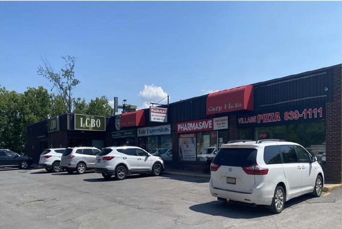 Excellent retail plaza in the heart of growing Carp, both residential and commercial. Plaza offers a wonderful exposure on Main Street, long term tenants (LCBO, Pharmacy, Hair Salon, Pizza Restaurant & Bakery), nice size lot A SOLID COMMERCIAL INVESTMENT PROPERTY. This "Carp Mall" has 5 strong tenants including 2 franchises, and TENANTS HAVE BEEN THERE FOR YEARS WITH LEASES AND OPTIONS. THE PIECE OF LAND ATTACHED TO THE SOUTH HAS BEEN PURCHASED BY OWNER AND ADDED TO SUBJECT PROPERTY MAKING A TOTAL OF 38168 SQFT.; ROOM FOR EXPANSION OR ADDING A RESIDENTIAL PROPERTY, ZONING ALLOWS MANY USES; FACING RETIREMENT HOME BUILT 8 YEARS AGO.. Plenty of parking.