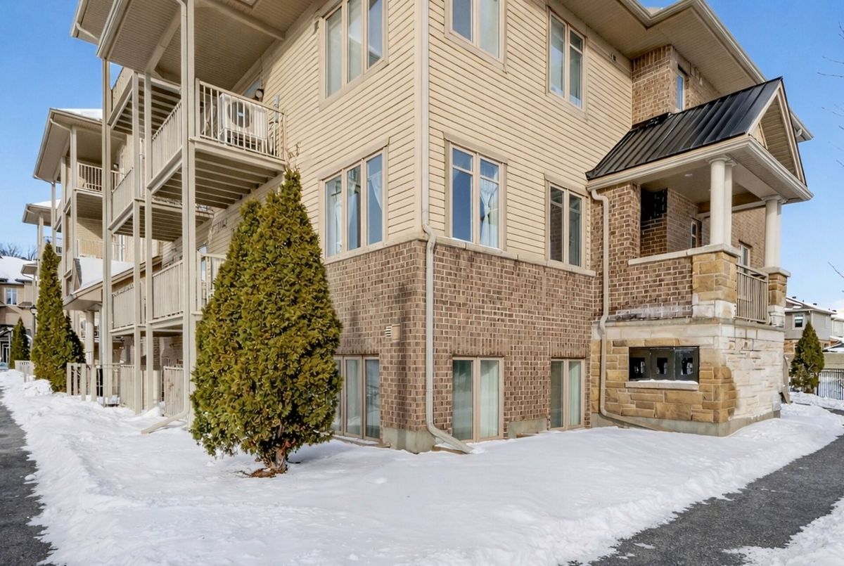 This spacious, turn-key 2-bedroom, 2-FULL BATH CORNER UNIT features a PRIVATE entrance, TWO PATIOS FOR OUTDOOR ENJOYMENT, & no directly adjacent neighbours. Enjoy carefree condo living with a freehold BUNGALOW VIBE offering the best of both worlds! This ~1135 sq ft (per plans)unit features a breezy open-concept main living space, principal bedroom with 3-PIECE ENSUITE and WALK-IN CLOSET, spacious second bedroom w/ 2 WINDOWS; full family bath. Tasteful fixtures & finishes in a NEUTRAL PALETTE, easy care HARDWOOD & TILE flooring, convenient PARKING AT THE UNIT ENTRANCE, plus visitor parking and BIKE STORAGE also included. Residents value a NEWER COMMUNITY surrounded by all needs & wants, including excellent schools, shops, transit, outdoor recreation, & efficient access to Riverside South, the neighbouring community of Barrhaven (across Vimy Memorial Bridge) & within minutes to the charming village of Manotick. Ideal access to the LRT, busses, schools, playgrounds, golf & the airport. Well suited for busy professionals, first-time buyers, downsizers & snowbirds alike. MOVE-IN READY! Call to view!