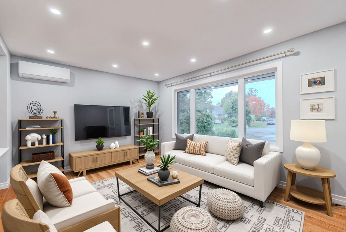 A charming 1.5-storey home that perfectly combines style, comfort, and functionality. Featuring 4 bedrooms, 3 full bathrooms, and a lower-level den, this beautifully property offers a bright and inviting layout ideal for family living.The main level showcases gleaming hardwood floors(2024),a spacious living room with a large window(2025) and custom eating table, and a chef's kitchen(2025) complete with quartz countertops, adouble sink, new stainless-steel appliances. Upstairs, enjoy spacious bedrooms and modern bathrooms with new finishes.The fully finishedbasement(2025) adds valuable living space, featuring a cozy family room with an electric fireplace, a laundry area with new washer and dryer,and a stylish stainless sink. Outside, the private backyard with mature trees and a deck(2025) offers the perfect setting for relaxation orentertaining. With fresh paint, and new mini-split A/C units, this home is move-in ready and ideally located near the Rideau River, parks, CarletonUniversity, Algonquin College, excellent schools, shopping, and dining.