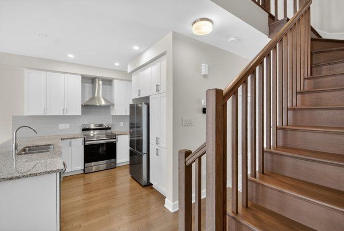 Beautiful contemporary ENERGY STAR qualified 3-bedroom townhome located in the heart of Finlay Creek. This bright and thoughtfully designed home offers a practical open-concept layout with 9 ft ceilings throughout the main level.The kitchen boasts abundant counter and cabinet space, along with stainless steel appliances. The living and dining areas feature gleaming hardwood floors and elegant finishes, while the kitchen and bathrooms are finished with ceramic tile flooring.Upstairs, you'll find three spacious bedrooms, including a large primary suite with a walk-in closet and a private en-suite bathroom. The finished basement offers a bright living area with an oversized window, a cozy fireplace, and ample storage space.Conveniently located close to transit, recreation, shopping, and schools.
