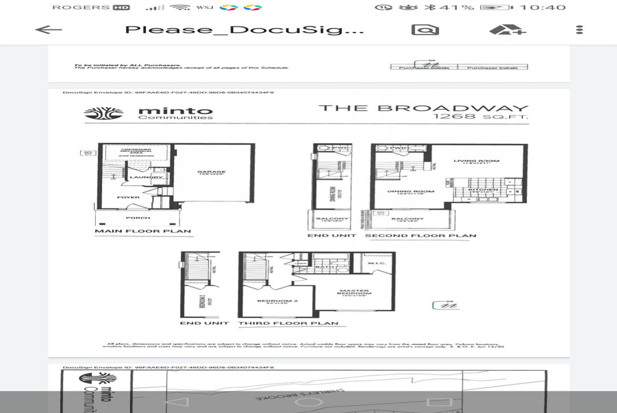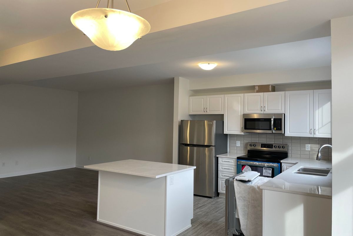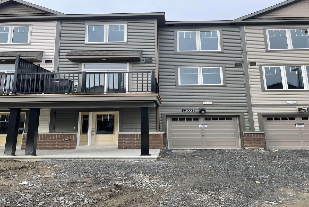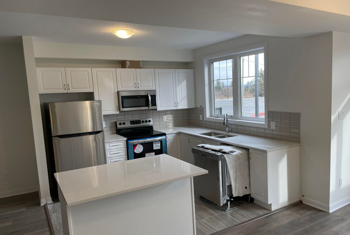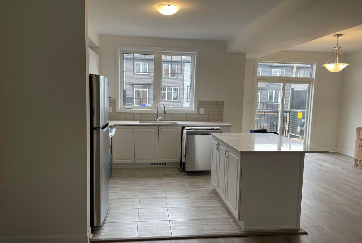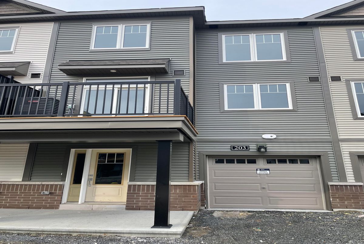 Minto Communities "The Broadway" model around1,268 sq ft. Walking distance to Kanata Hi-Tech Park, schools, transit, shopping malls, and easy access to many golf & country clubs. Ground Flr has laundry area, utilities rm and additional storage space. 2/F features open concept of kitchen, dinning and living areas. Stainless steel appliances,sparkling quartz countertop w/back-splash, a large kitchen island, and plenty of cabinetry. Enjoy the private balcony/deck w/AC and gorgeous view of the neighborhood. The top level (3/F) features 2 bedrooms w/a full main bathroom. Hot Water Tank about $45~50 /month. Landlord covers property tax, around $73.00/Month to cover Common Area Maintenanceinclude snow removal. Tenant to pay all utilities (electricity, gas, water/sewer, tankless water tank rental), tenant insurance, cable/phone/internet,snow removal on own driveway/lawn removal. Renting this townhouse your dream home! Available 1st April 2026. Require 24 hours notice to exiting tenants for showing. Pls remove shoes and turn off lights after showings. Rental Application, Agreement to Lease, with Credit Report & income confirmation.