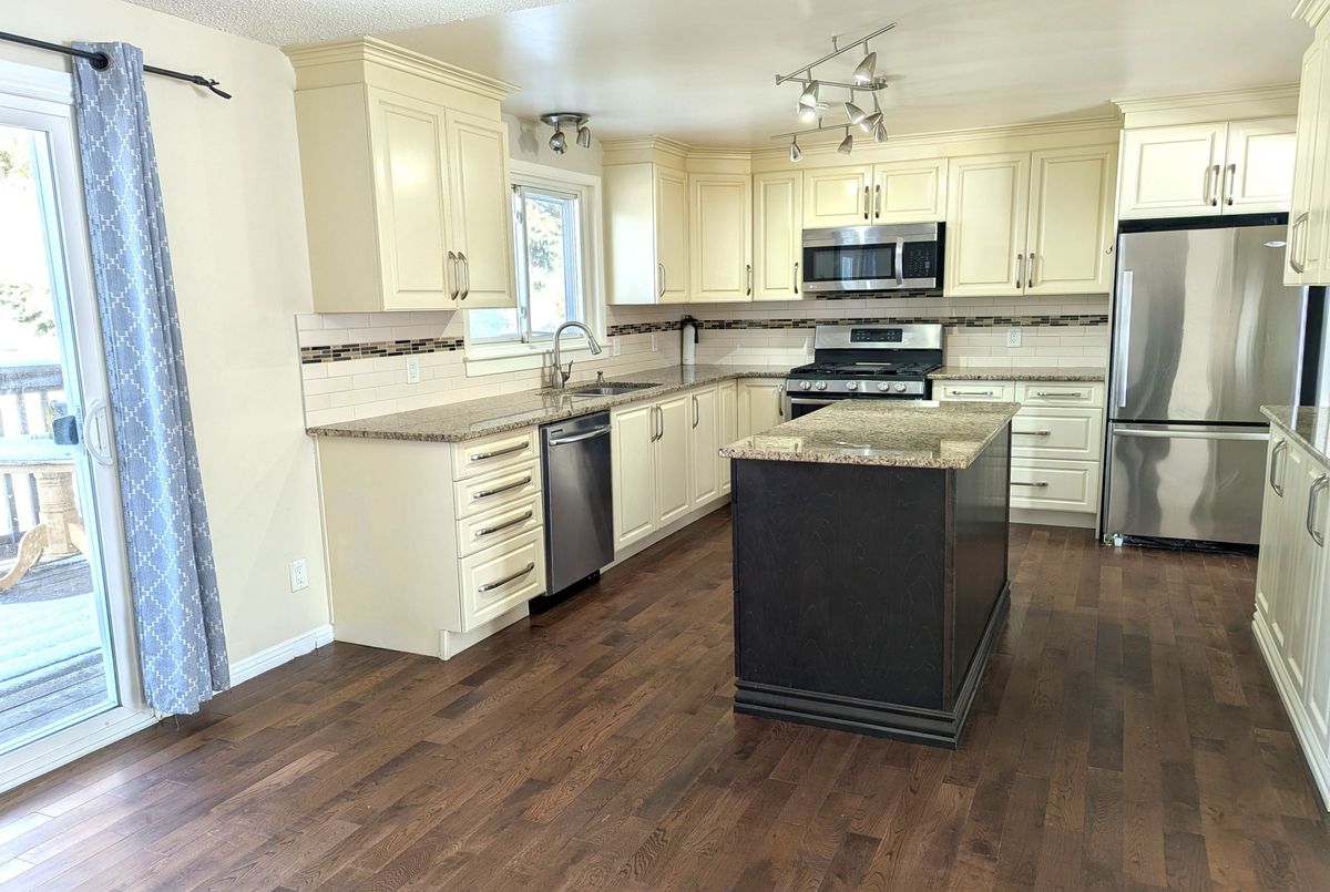 Lovely 3 bedroom home in great neighborhood, close to schools, shopping and transit. Large Kitchen offers island, granite counter tops, stainless steel appliances. Main floor features hardwood floors and ceramic throughout. Bright lower level family room is perfect for the growing family. Additional apartment with separate entrance currently currently rented for $1000/m. Over sized single car garage. Don't miss this opportunity for a single family home.