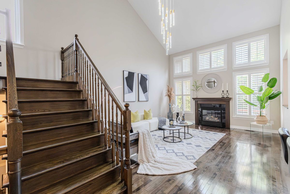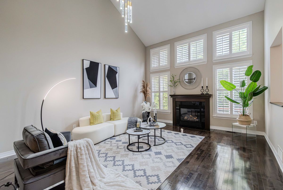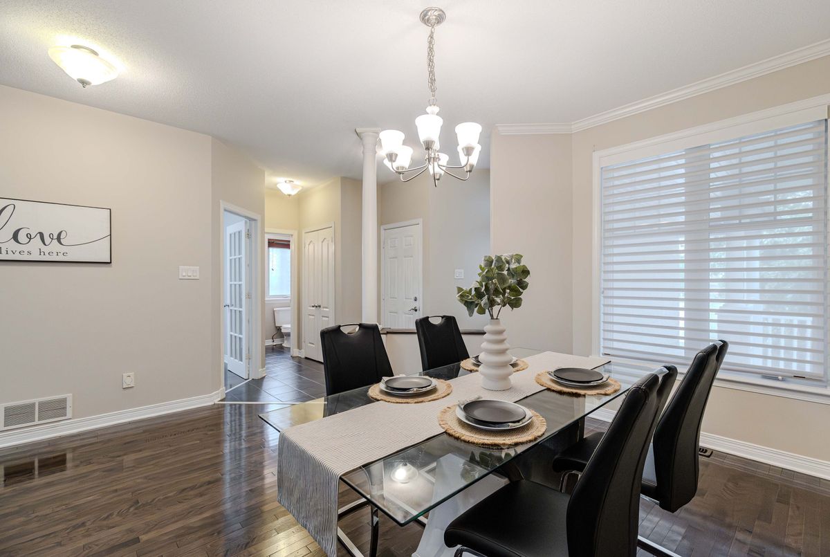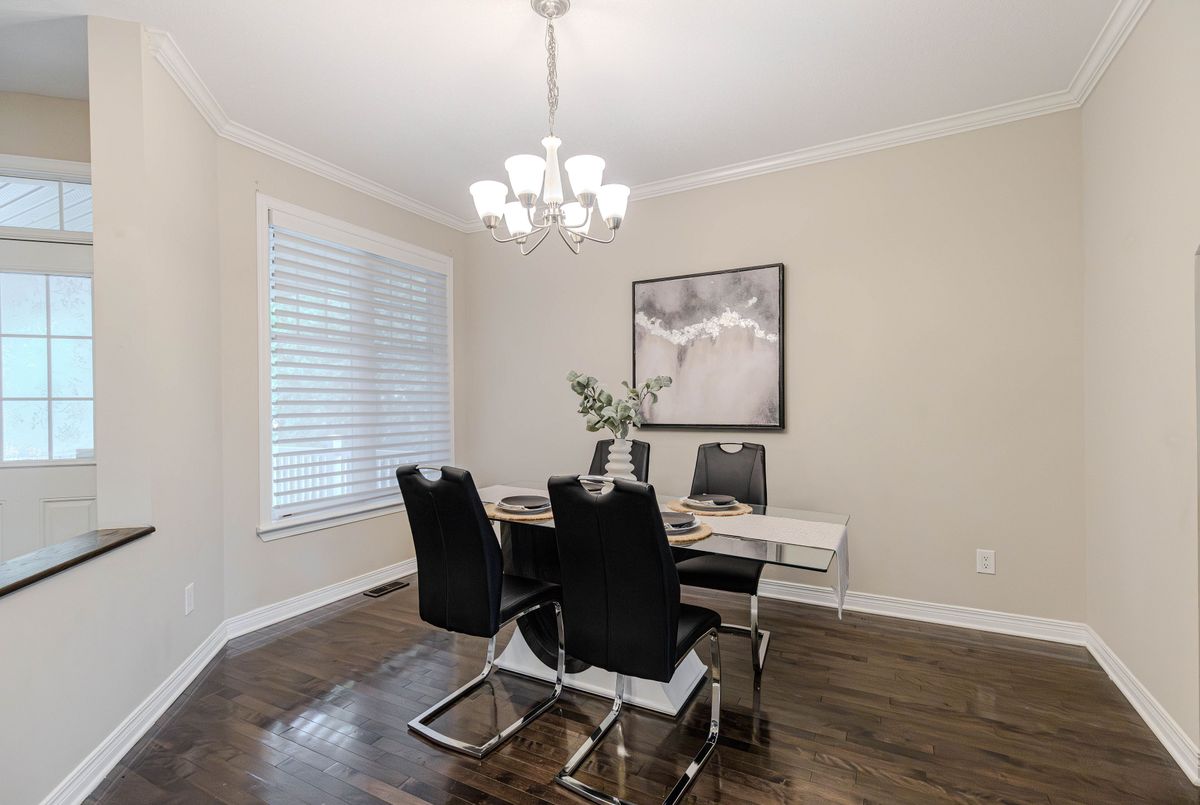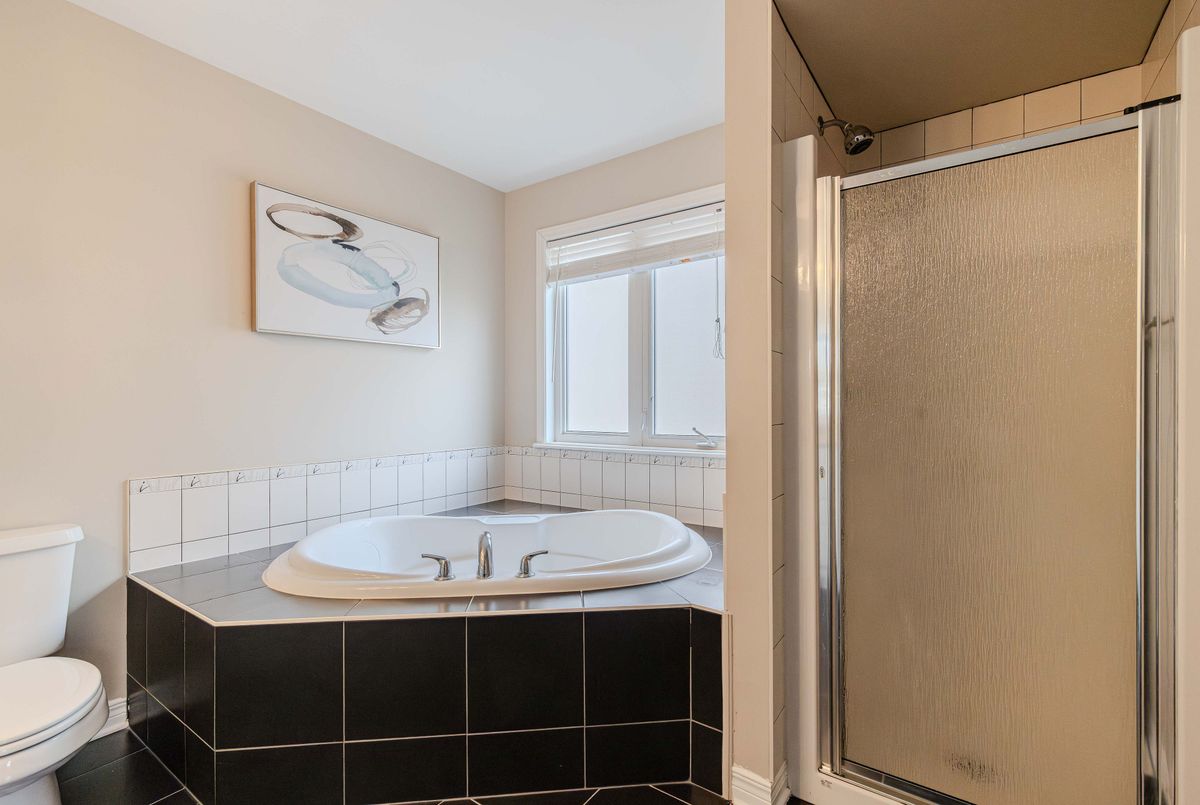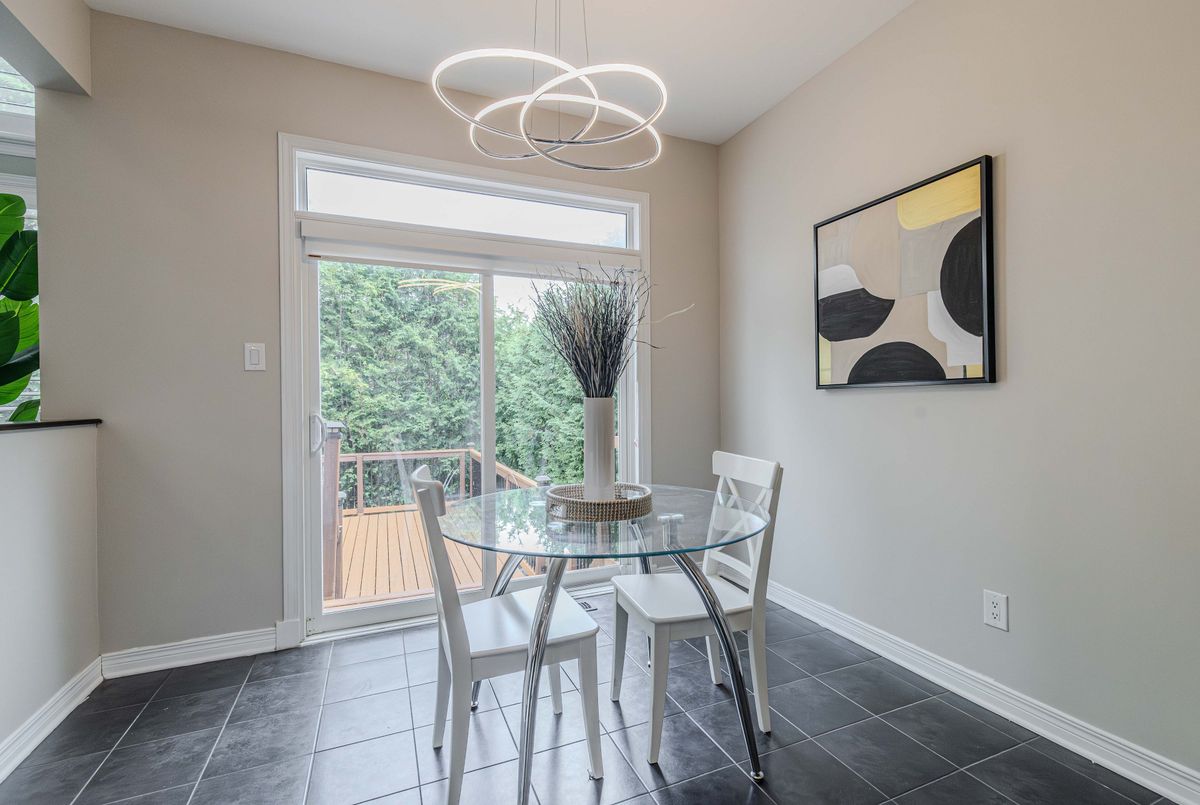 Prime location directly facing a park! Stunning full brick façade with a charming front porch. The main floor boasts a spacious open-conceptdesign, featuring a soaring two-storey living room with a dramatic wall of windows adorned with California shutters. The transitional-style kitchen includes sleek black granite countertops and a contemporary tile backsplash. Adjacent eat-in area leads to a generous 24x16 ft deck with sunny western exposure perfect for evening gatherings. Elegant hardwood staircase leads to the upper level. The expansive primarybedroom features vaulted ceilings. The fully finished lower level offers a full bathroom, 4th bedroom, and a comfortable family/rec room.