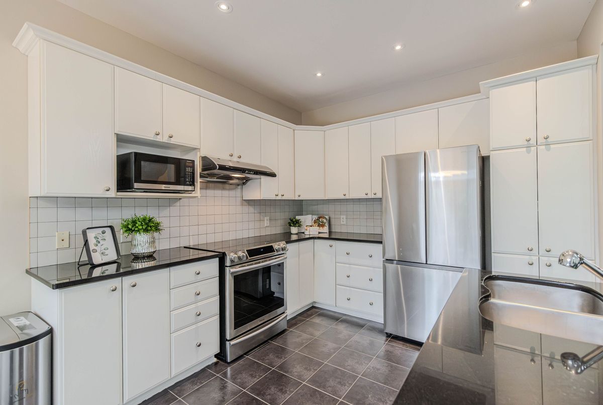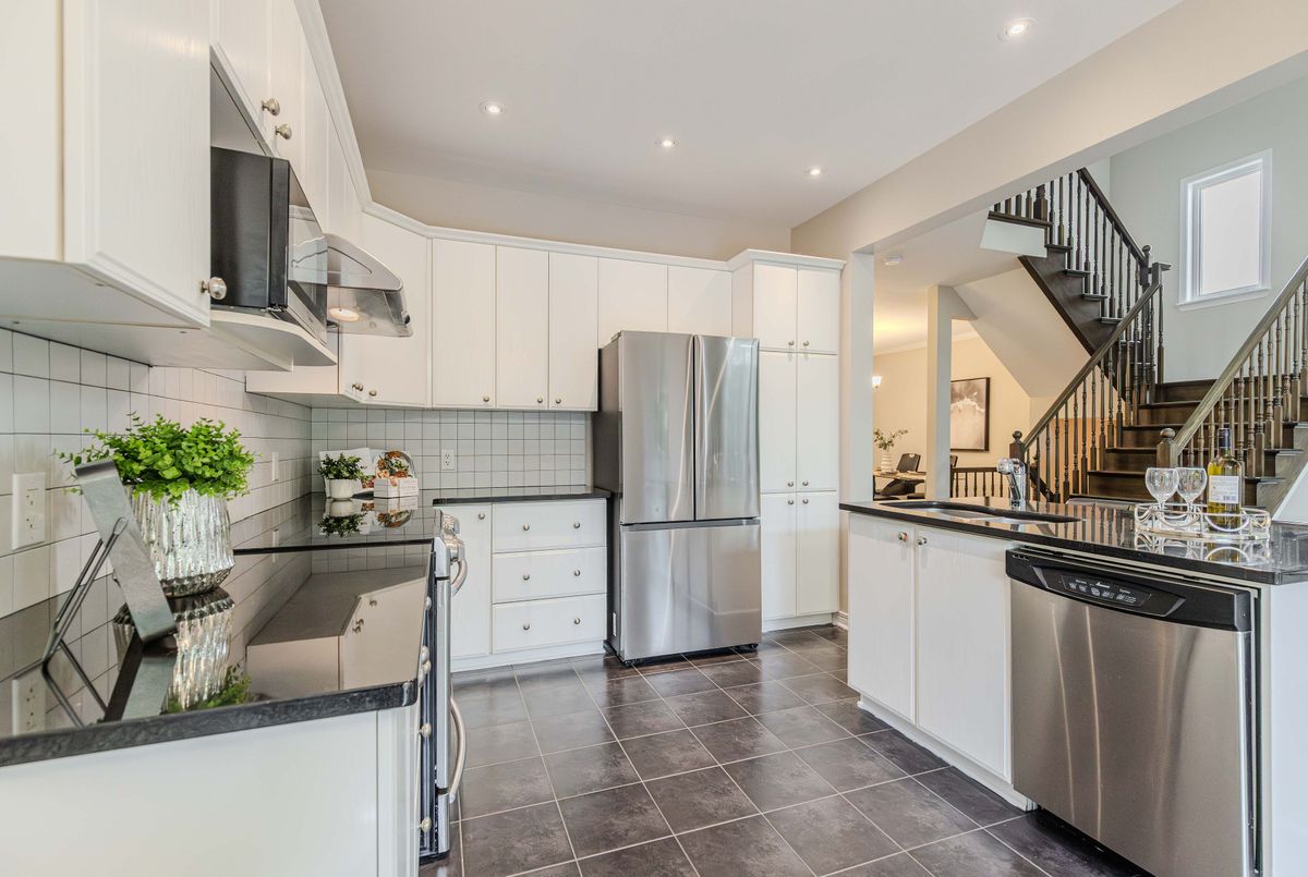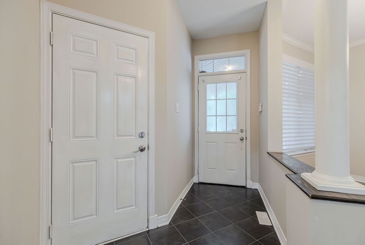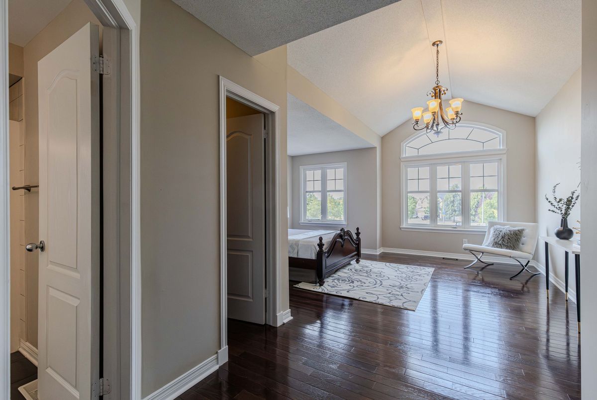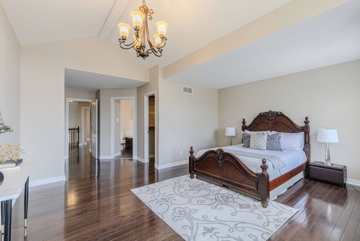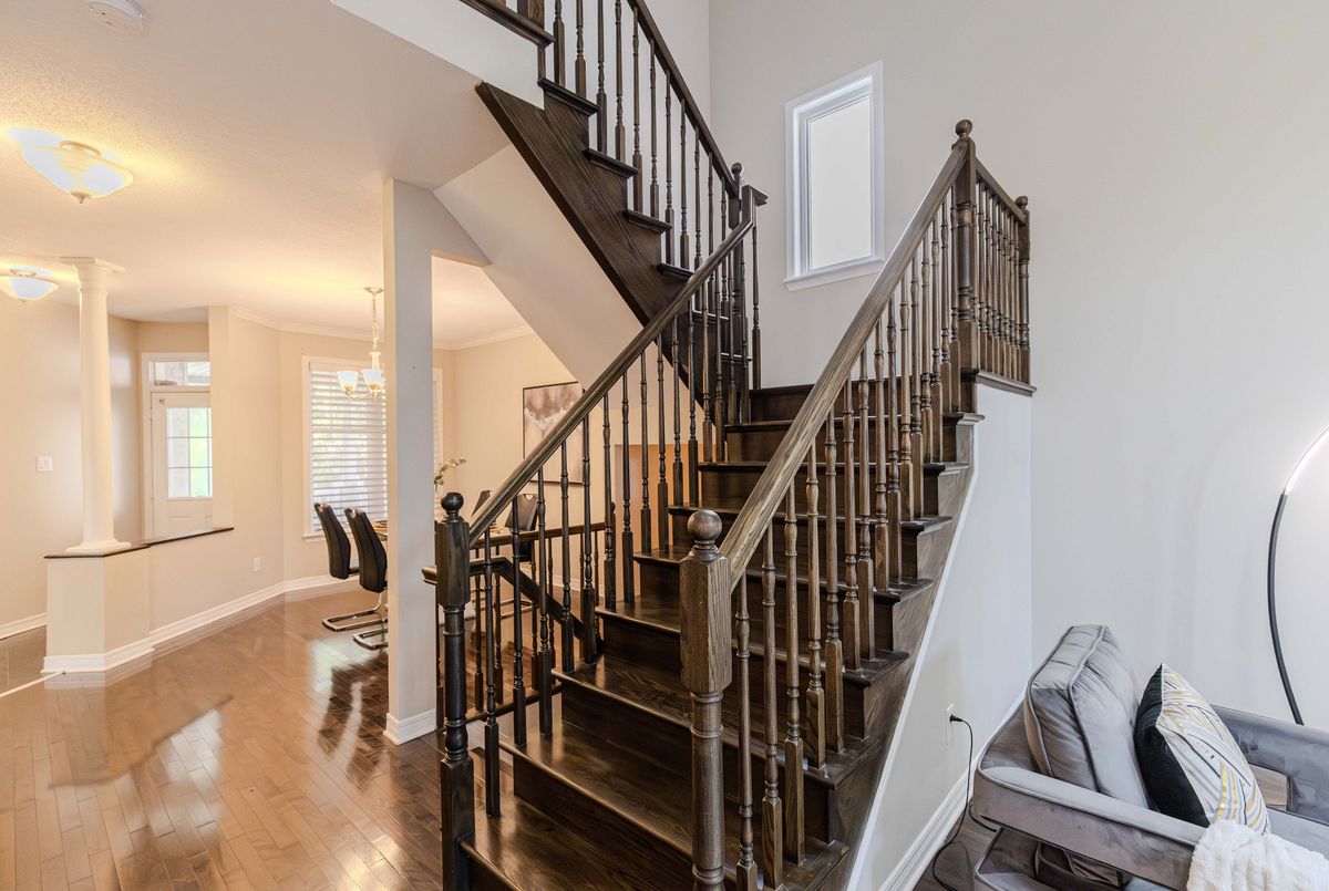 Prime location directly facing a park! Stunning full brick façade with a charming front porch. The main floor boasts a spacious open-conceptdesign, featuring a soaring two-storey living room with a dramatic wall of windows adorned with California shutters. The transitional-style kitchen includes sleek black granite countertops and a contemporary tile backsplash. Adjacent eat-in area leads to a generous 24x16 ft deck with sunny western exposure perfect for evening gatherings. Elegant hardwood staircase leads to the upper level. The expansive primarybedroom features vaulted ceilings. The fully finished lower level offers a full bathroom, 4th bedroom, and a comfortable family/rec room.