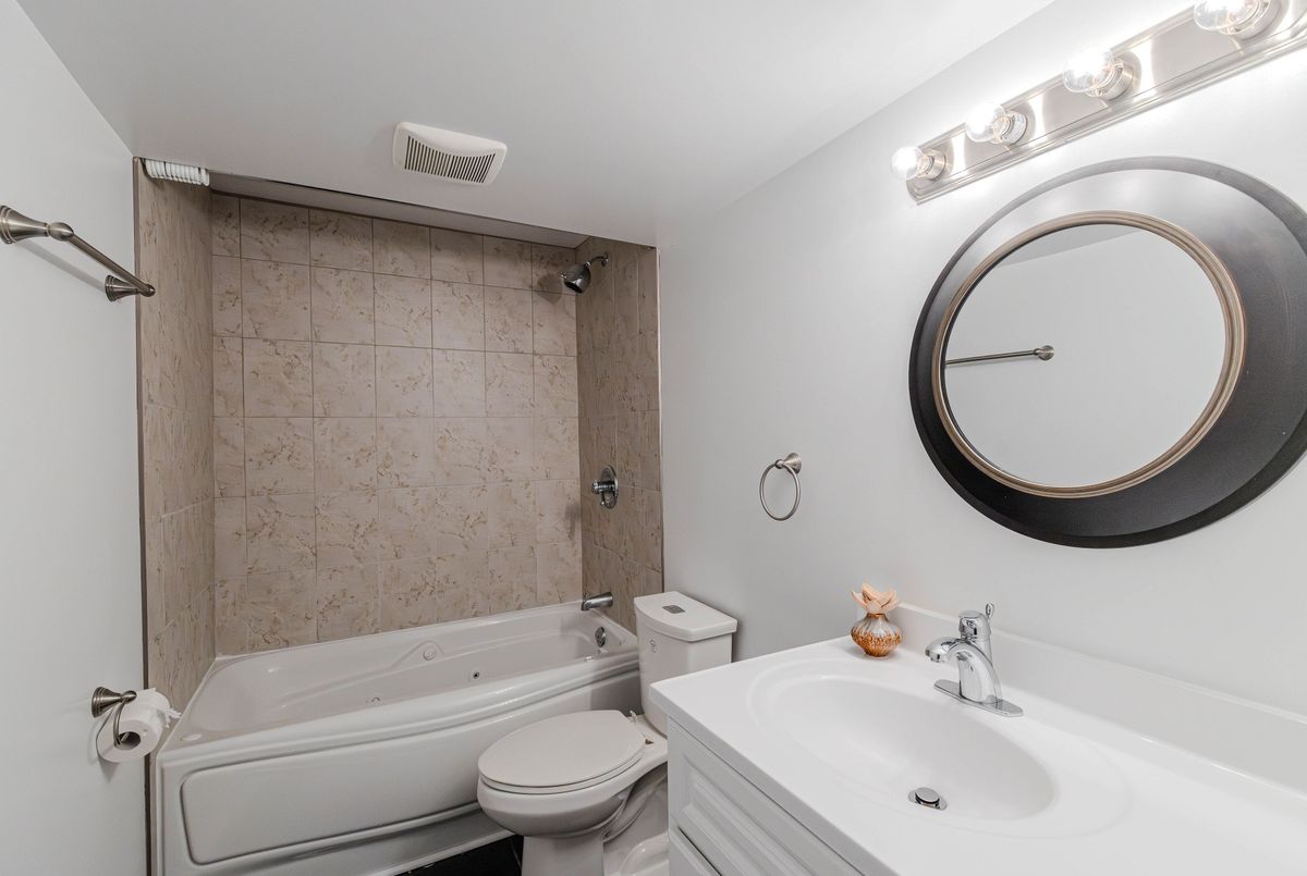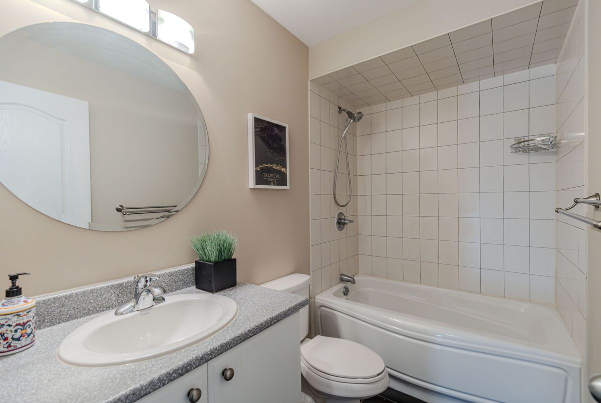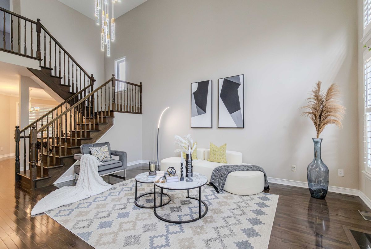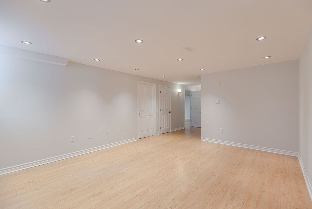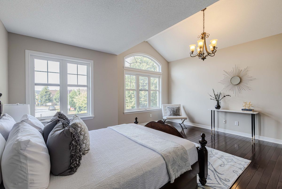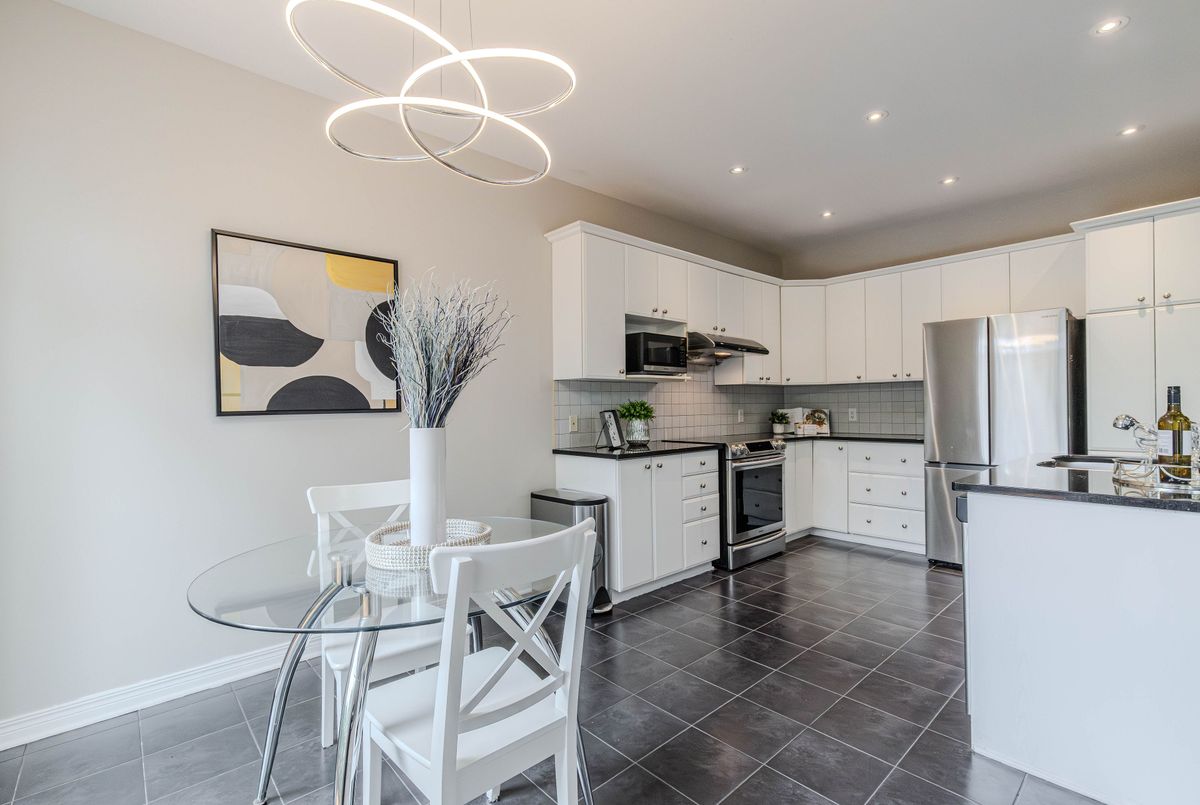 Prime location directly facing a park! Stunning full brick façade with a charming front porch. The main floor boasts a spacious open-conceptdesign, featuring a soaring two-storey living room with a dramatic wall of windows adorned with California shutters. The transitional-style kitchen includes sleek black granite countertops and a contemporary tile backsplash. Adjacent eat-in area leads to a generous 24x16 ft deck with sunny western exposure perfect for evening gatherings. Elegant hardwood staircase leads to the upper level. The expansive primarybedroom features vaulted ceilings. The fully finished lower level offers a full bathroom, 4th bedroom, and a comfortable family/rec room.