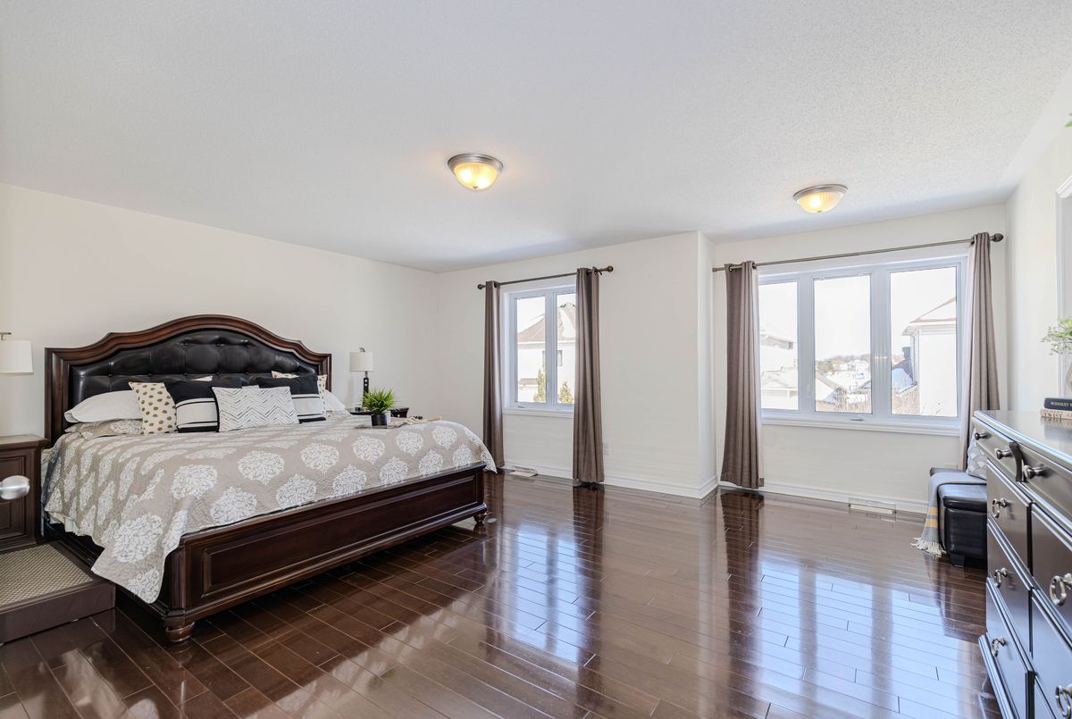 Built in 2009, this stunning Chapman Mills home is nestled on a quiet street and features 9-foot ceilings with premium hardwood floors across both the main and second levels. The bright, open-concept layout is anchored by a cozy family room with a gas fireplace and oversized windows. The modern kitchen boasts elegant quartz countertops and a central island, also with quartz waterfalls, SS appliances, and a breakfast area leading to a massive 20' x 20' cedar wooden deck in a fully fenced backyard with a storage shed. 4 bedrooms on second floor. Featuring an extraordinary primary suite with a 5.5-meter width, walk-in closet, and a luxury 5-piece ensuite. Second 5-piece bathroom with double vanities. For added convenience, the home is equipped with a Central Vacuum system, and HRV Air Exchanger for improved indoor air quality and humidity control Parking is exceptional with a widened interlock driveway (extended by 0.5m) that fits 4 cars, plus a 2-car garage for a total of 6 parking spaces. The house has plenty of ground space, over 2800 square feet, The large unfinished basement with two bright windows offers endless potential for a gym or theatre. Ideally located near by shopping and Barrhaven Town Centre. Top schools like Chapman Mills Public School 0.5km, Longfields-Davidson Heights Secondary School 1.5km. Quick access to Chapman Mills and Longfields Drive for an effortless commute.