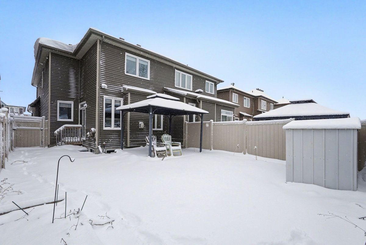 Beautifully maintained Tartan-built 3-bedroom + loft semi-detached home in a fantastic location. The open-concept main floor features a spacious layout. The kitchen offers generous counter space, stainless steel appliances, and a window-facing sink. A spacious dining area and bright living room provide a comfortable living space, with patio doors leading to a private backyard and Gazebo. The second level features a spacious primary bedroom with a five-piece ensuite and a walk-in closet. Two additional generously sized bedrooms, an open loft, a convenient laundry area, and a full four-piece bathroom complete this level. The fully finished basement provides valuable additional living space along with excellent storage. Perfectly located within walking distance to Superstore, shopping, recreation facilities, public transit, and many parks.