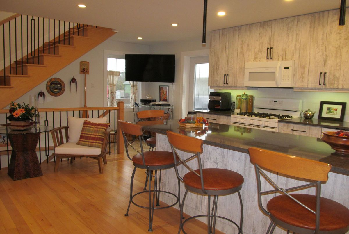 Life in a village is simple, away from the hustle and bustle of cities. This delightful totally renovated two storey home is situated in the heart of White Lake village literally 2 minutes from the General Store and within walking distance of the public beach and boat launch on White Lake. You enter to an open concept foyer, living room and kitchen tastefully decorated, painted in neutral tones with maple hardwood floors. Unique cabinetry in the kitchen, custom backsplash plus a sizeable breakfast bar with quartz countertop. A convenient two piece bath, coat closet and doorway leading out to the spacious rear deck overlooking the lovely perennial gardens complete the main floor. An elegant stairway leads to the upper level where your primary bedroom is situated complete with his and her lighted closets. Luxuriate after a day working in the garden in the free standing tub, enjoy your morning shower in the spacious shower stall and, bonus, do a load of laundry as the stackable washer/dryer are located in the bathroom. The upper hallway is drenched in natural light, has a hidden storage area plus a cozy lounging area for you to sit enjoy an afternoon of reading your favourite novel. Your lower level has a thoughtfully arranged second bedroom with plenty of additional room for your exercise equipment, computer/craft table. Loads of storage is available in the utility room which also has a sink for cleaning up after those grimy chores. Local amenities include a golf course, downhill skiing, cross-country skiing, snowmobile trails, charming artisan stores and restaurants. Arnprior and the Hwy 417 interchange is a 12+ minute drive. Take a leisurely drive on the myriad of country roads to explore the quaint Ottawa Valley villages. A world of simplicity and tranquility awaits you!