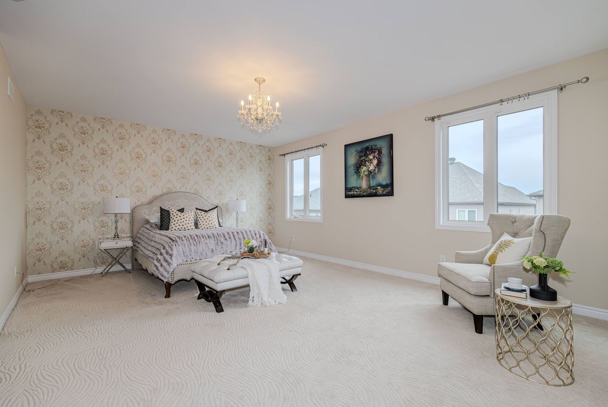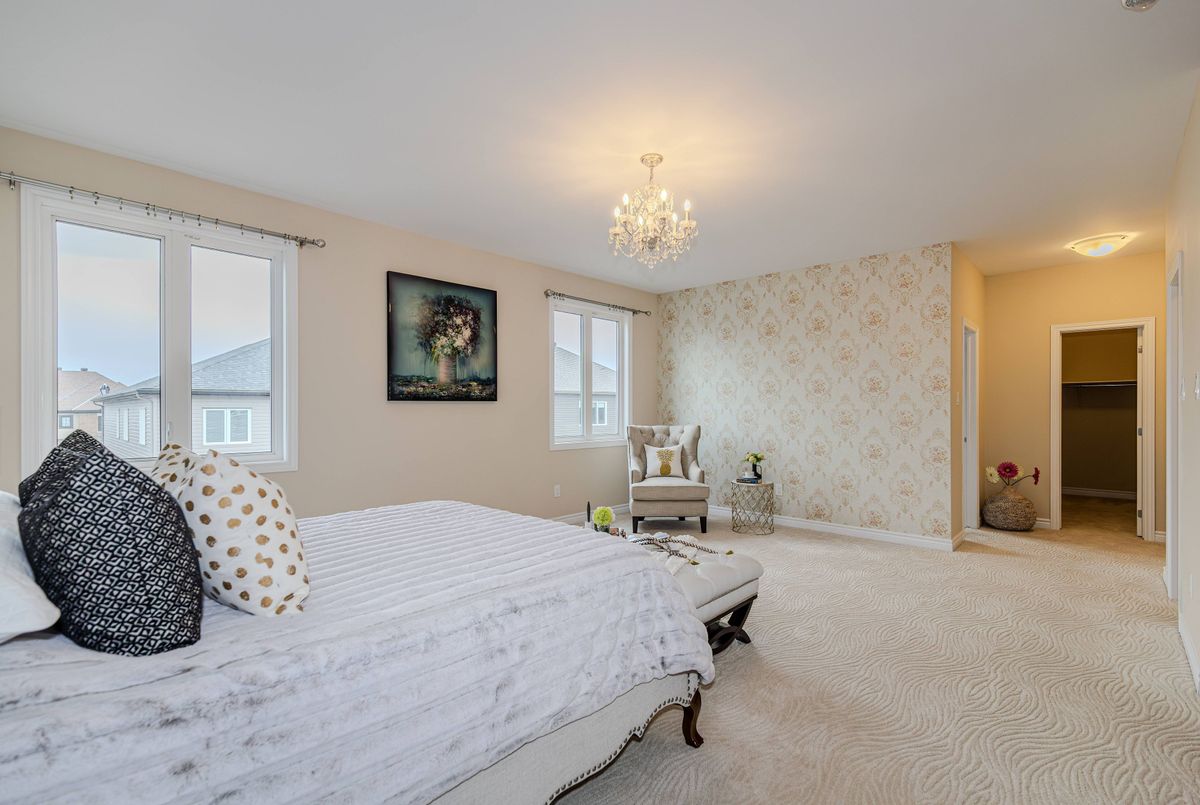 Welcome to this stunning Minto executive home in the highly sought-after Quinn's Pointe community, perfectly positioned facing a large park and offering exceptional privacy on a quiet street with minimal traffic and ample nearby parking.This beautifully upgraded home showcases a striking stone exterior façade and nearly $60,000 in premium upgrades, blending luxury with everyday functionality. Step inside to a bright and elegant main level featuring 9-foot ceilings on both the first and second floors, enhanced by oversized, upgraded windows on the second level that flood the home with natural light.A grand curved staircase sets the tone, leading into a formal dining room and a sun-filled open-concept great room with a custom stone fireplace, perfectly oriented to enjoy southeast exposure alongside the living area and primary bedroom. The gourmet kitchen offers gleaming quartz countertops, breakfast area, and brand-new appliances (March 2026) including a stove, dryer, hood fan, and dishwasher for added convenience.Upstairs, you'll find four spacious bedrooms, each featuring its own walk-in closet and direct bathroom access. The luxurious primary suite is a true retreat, complete with a massive 5-piece ensuite (with upgraded glass shower) and two oversized walk-in closets. A second-floor laundry room adds everyday ease.Additional highlights include:Functional mudroom with walk-in closet and inside access to a double-car garage, upgraded hardwood flooring on stairs and second-floor hallway, plus enhanced carpeting in bedrooms. Friendly, quiet neighborhood with excellent community atmosphere. The expansive unfinished basement offers endless potential to customize your dream space.Located just minutes from top-rated schools, parks, and the Minto Recreation Complex, this home truly has it all.Don't miss this rare opportunity-book your showing today!