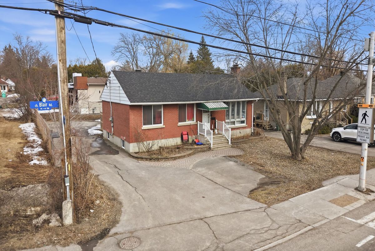 911 Blair Road - Bungalow 3 bedroom main level plus additional lower level two one bedroom apartments with separate entrance on a large lot in a Cardinal Heights location! Prime Location with endless potential! Situated next to NRC, CSIS and LRT. This corner lot is perfect for developers, investors or home owners looking for extra income and offers expanded flexibility and significant redevelopment potential. Main floor offers 3 bedrooms plus solarium/home office having wood floors throughout, plenty of natural light, good size kitchen, living/dinning room w/wood fireplace and also solarium/sunroom (can be use as home office and can also access from back of house from separate entry). The lower level is fully finished with private entrance having tiles throughout, for two one bedroom units having kitchen, bedroom, bath and living room. This property features carpet free, new furnace, Central A/C, Roof, wider driveway for parking 5 cars. Next to Gloucester Shopping Centre, LRT, Walmart, Costco, Major Employers (NRC, CSIS), recreation facilities, green space, bike trails and quick access to highway. Lower level is vacant to setup their own rent and main level tenants are moving april end.