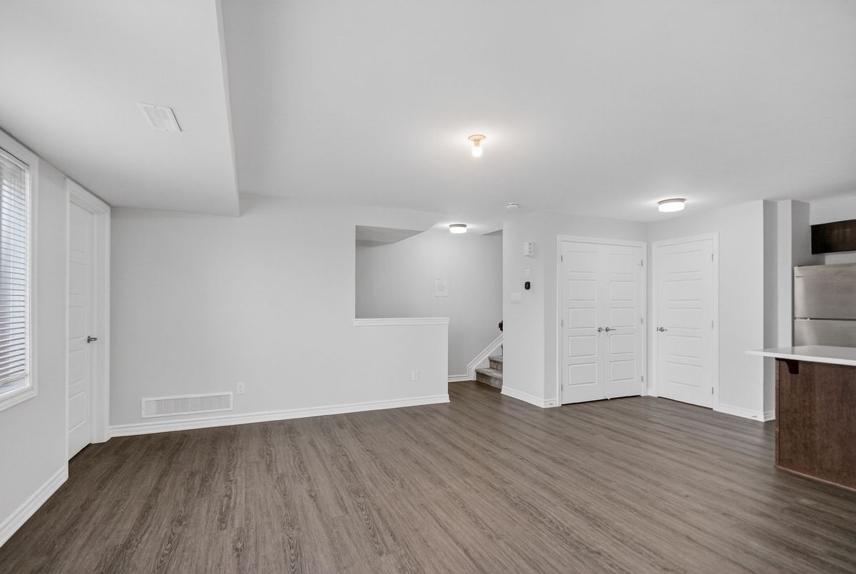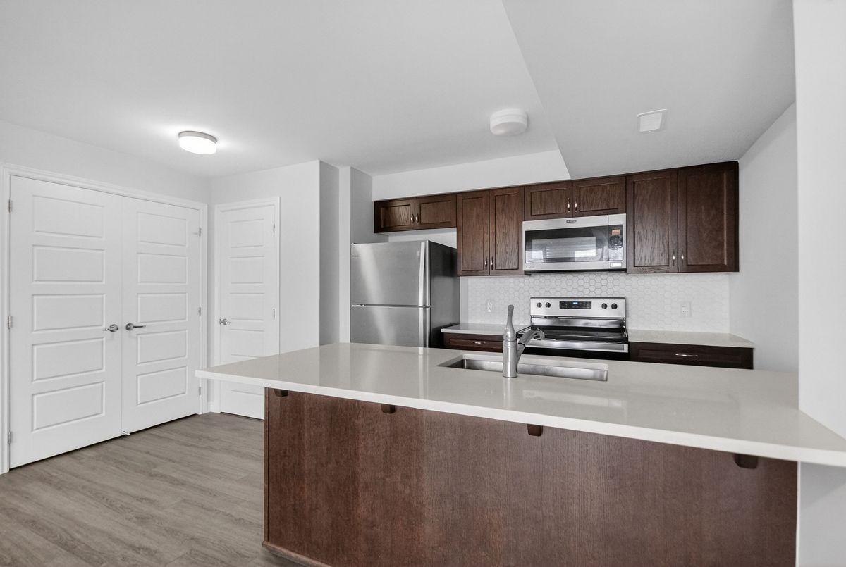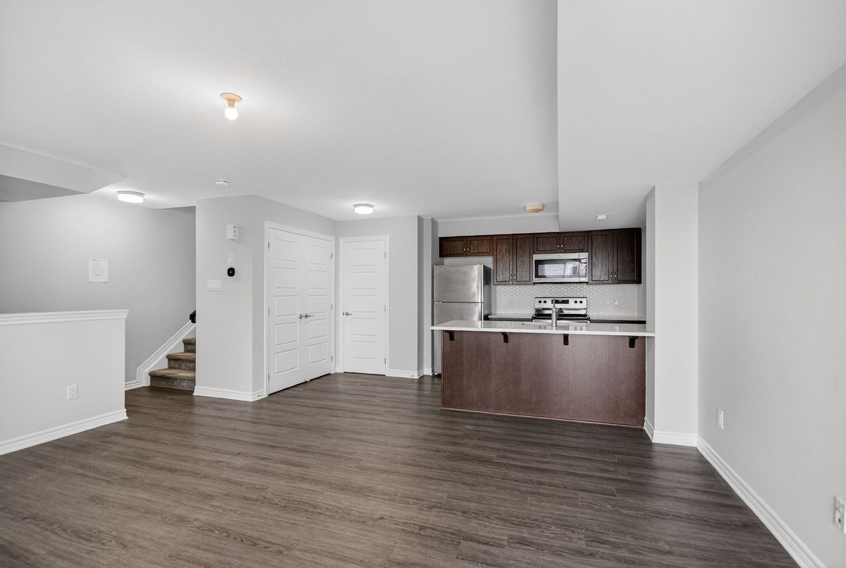 This Blackstone South condo is turnkey and move-in ready! Beautifully finished and very practical layout with 2 bedrooms and 3 bathrooms. Modern and bright with a neutral colour palette throughout. The spacious, open-concept main floor is convenient for entertaining and everyday living. The family room is flooded with natural light. Upgraded kitchen with island, gorgeous quartz counters, and layered lighting with pot lights and pendant fixtures. This model offers two large outdoor balconies: one on the main level and one off a bedroom. The upgraded upper level features two large primary bedrooms with en-suites. The powder room on the main level is also practical for daily use and entertaining guests. Enjoy the convenience of an in-unit laundry room. Parking included. Walking distance to Fernbank Plaza, transit, parks and schools.