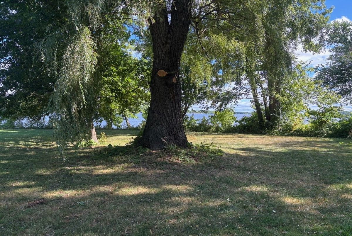 Beautiful treed waterfront property. Hi Ranch Bungalow needs total renovation, 2 bedrooms upstairs and 1 bedroom on the lower level, with two bathrooms. Property needs new Septic Tank. Is being sold for Land Value.