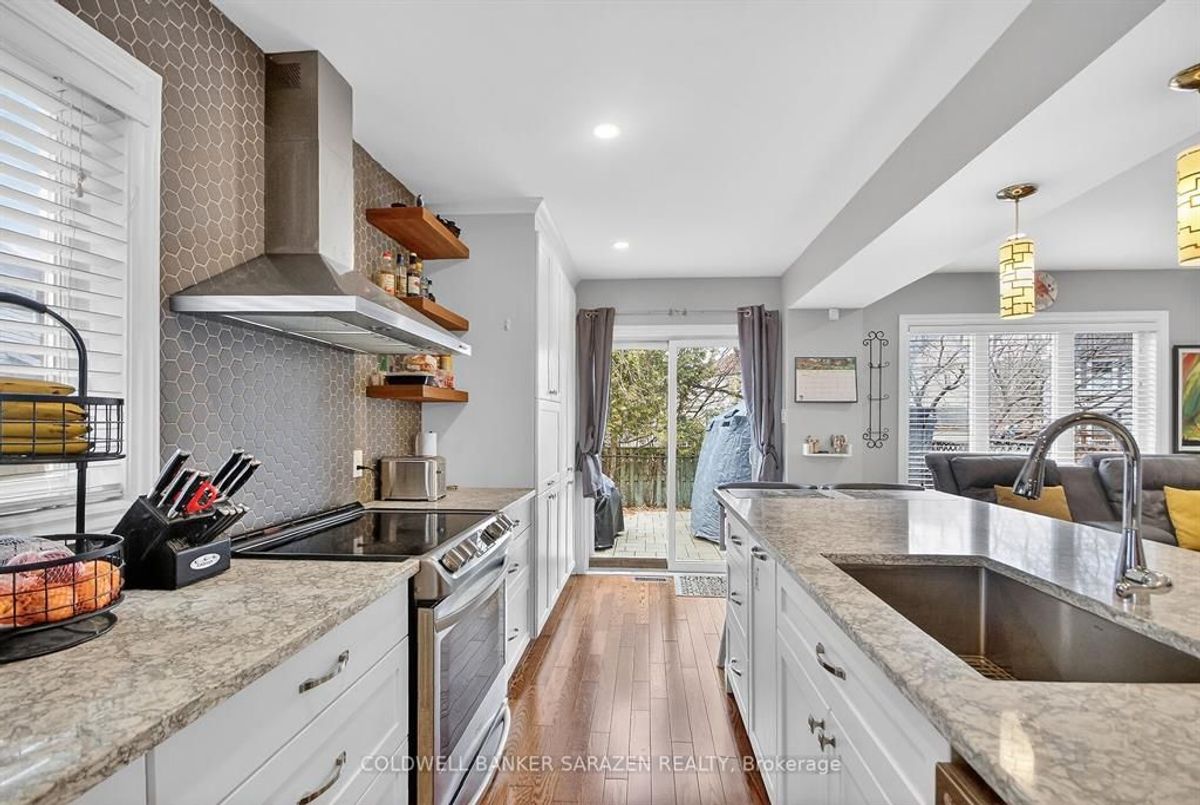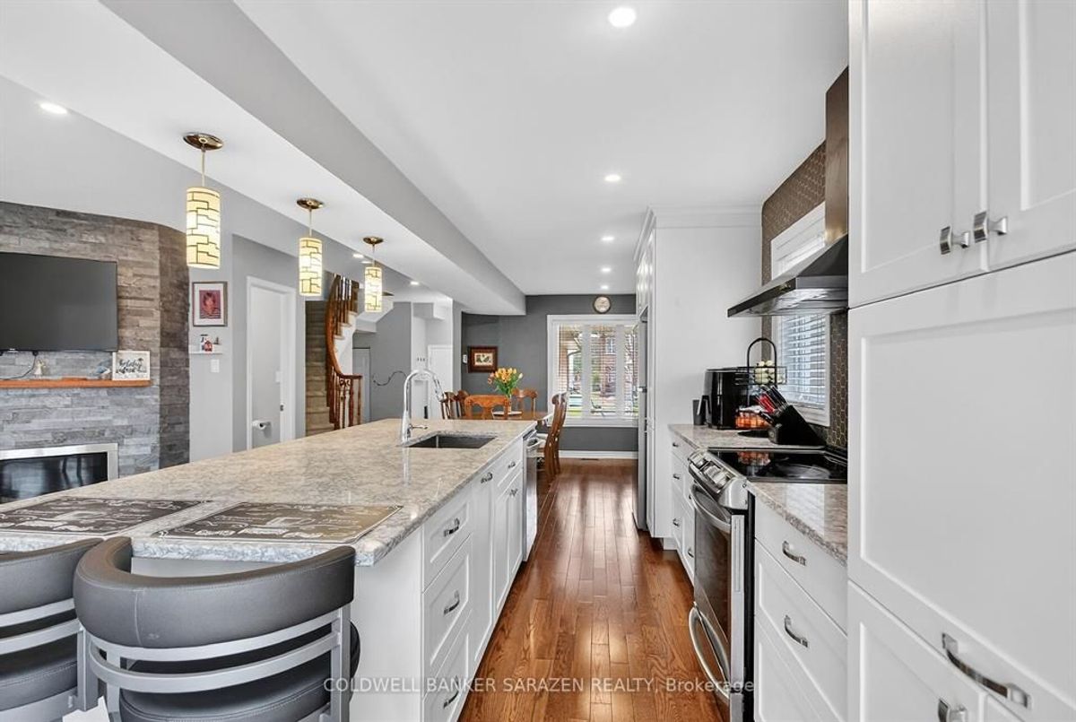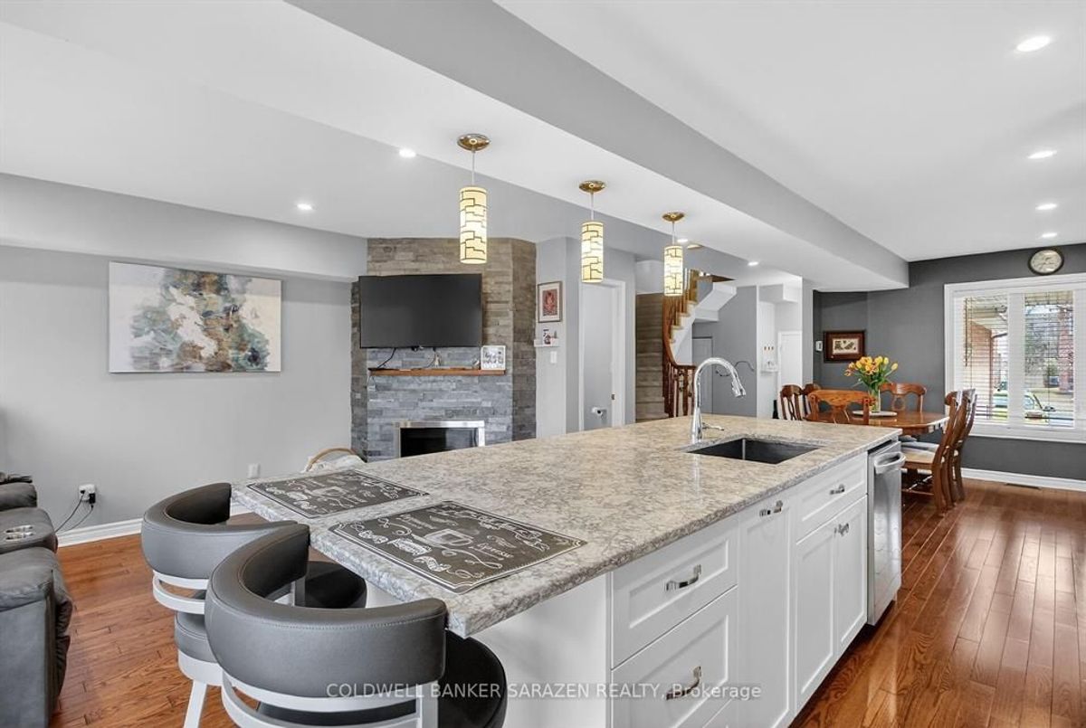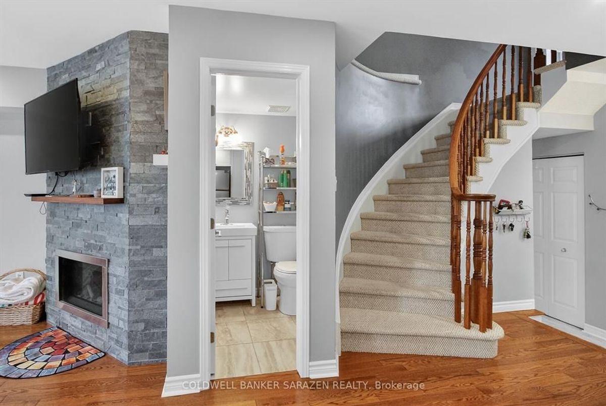 GORGEOUS END UNIT in a Fantastic Location! Welcome to 43 Daventry - a beautifully updated 3+ bedroom, 3.5 bathroom home offering space, style, and a private rear yard. The exterior is just as impressive as the interior, featuring a 4-car driveway, interlock in the backyard, river rock landscaping in the front, a metal-roof gazebo, and a fully fenced private yard-ideal for relaxing or entertaining. Inside, the completely renovated kitchen is absolutely stunning, showcasing beautiful island and coffee bar. This kitchen is both beautiful and highly functional. The main floor offers all new wood flooring and tile, along with a bright living room enhanced by a cozy fireplace. A mid-level family room with a second fireplace provides additional flexible living space-perfect for families or entertaining. Upstairs, you'll find a very large primary bedroom plus two other generous-sized bedrooms. The finished basement adds even more living space, complete with newer Berber carpet and a bathroom featuring heated flooring for extra comfort. Extensive renovations and inclusions are listed in the attachments. All of this-and so much more-makes this home a must-see. Have a look. You'll be glad you did!